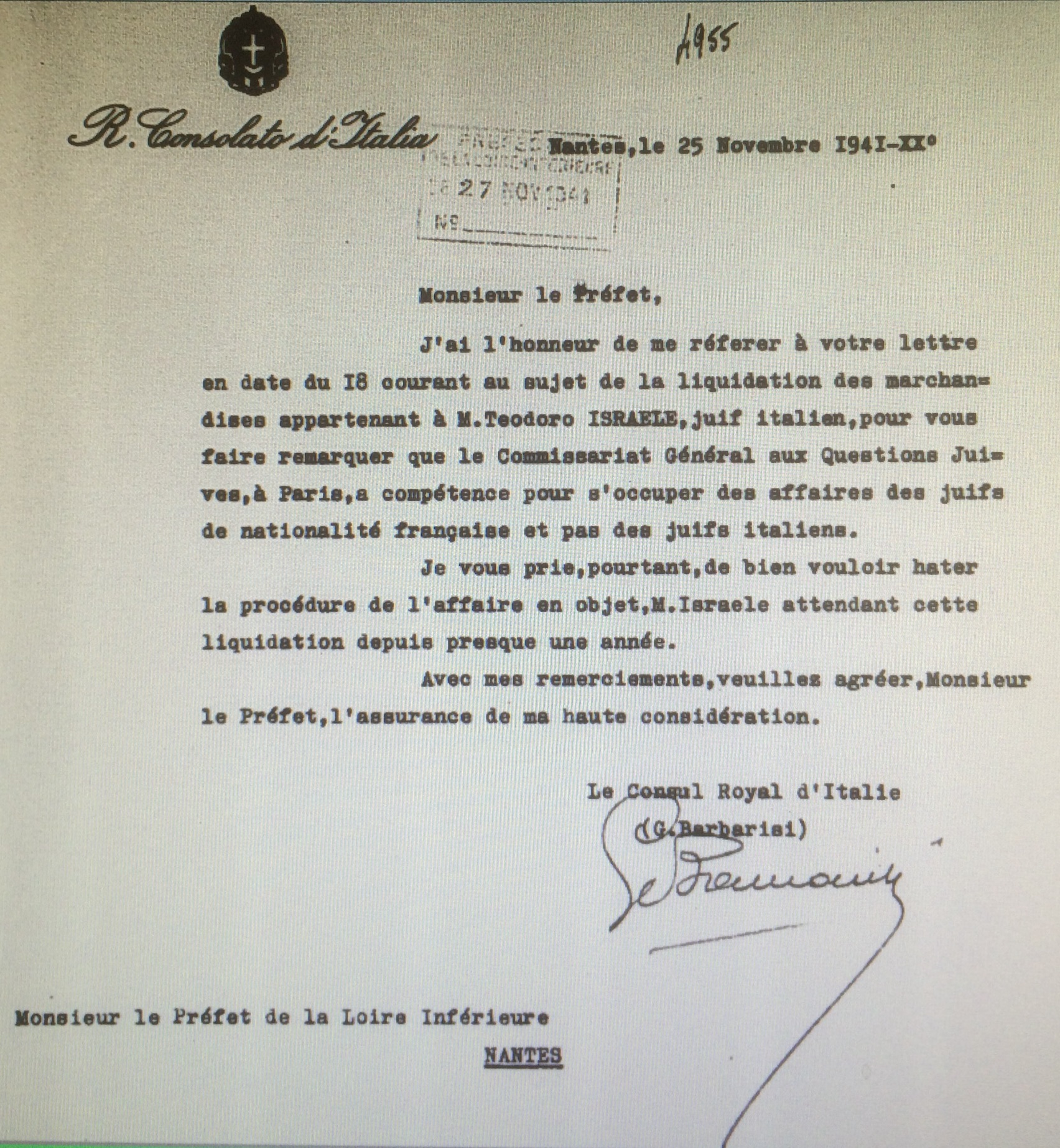 ![Courrier Consulat d'Italie 25 novembre 1941 [AN AJ38/4598 dossier n°2534]](https://shoahpresquile.com/wp-content/uploads/2019/04/41israel25111941.jpg)