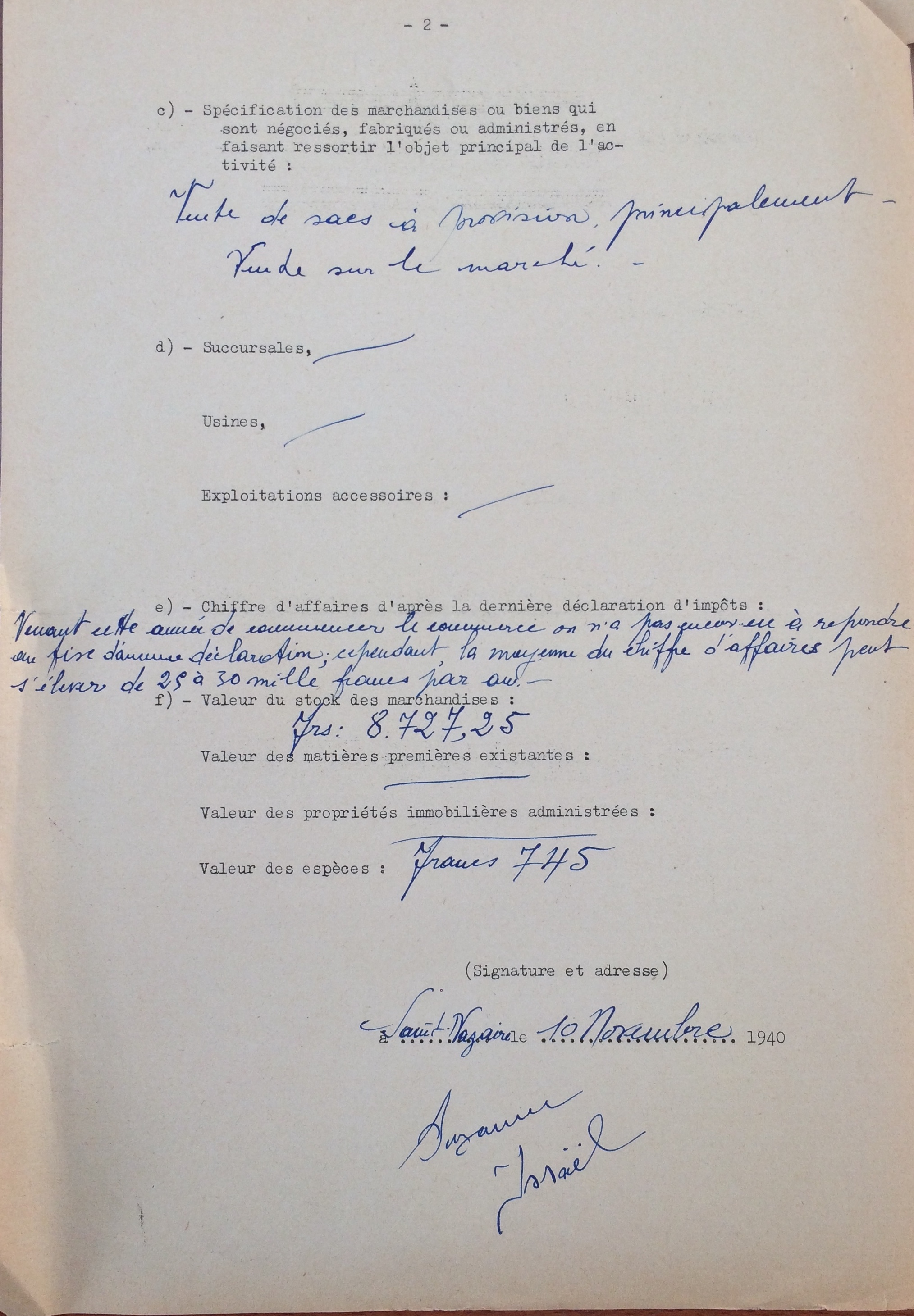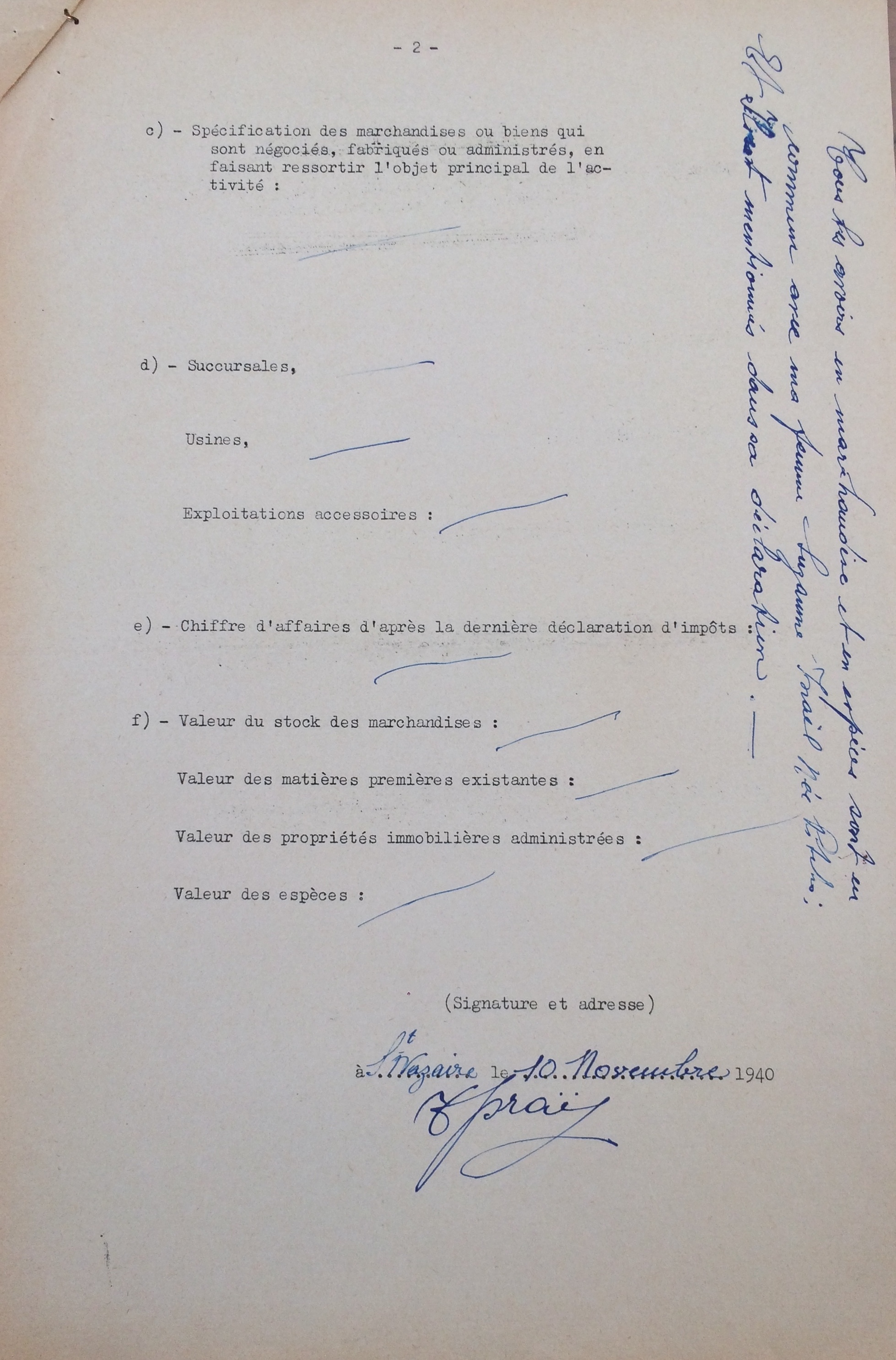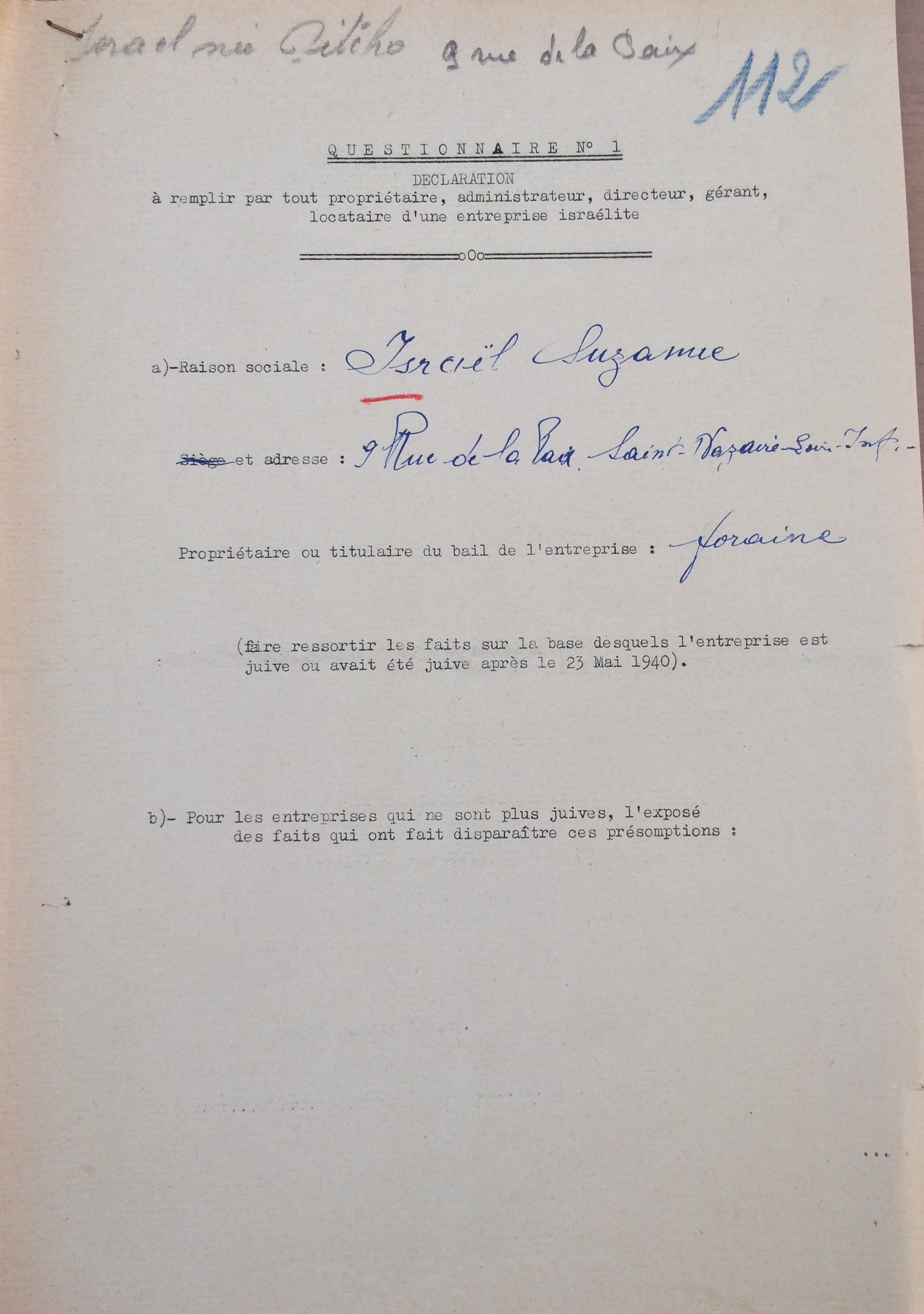 Documents annexes : déclaration d’entreprise juive [ADLA 1694W23]