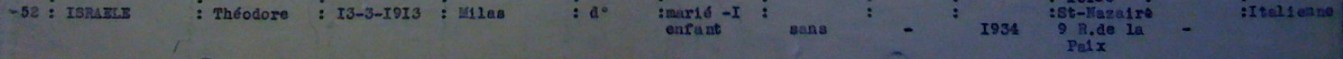 Théodore (Téodoro) ISRAEL est né le 13 mars 1913 à Milan (Italie) d’origine italienne arrivé en France en 1934 et est marié avec Suzanne ISRAEL née PITCHO née le 17 mai 1916 (source Sauvage et Trochu) et parents d’un enfant né en 1939. La famille habite un garni au 9, rue de la Paix à Saint-Nazaire et exerce la profession de marchand ambulant en maroquinerie : sacs de voyage, sacs à provision…