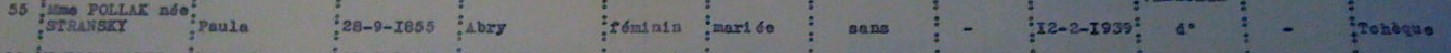 Pauline (prénom usuel Paula) POLLAK née STRANSKY est née le 28 septembre 1855 à Abry (?), est de nationalité tchécoslovaque et arrive en France le 12 février 1939. Elle est veuve, son mari Wilhelm étant décédé en 1897. Elle est la mère d’Hedda KUX.