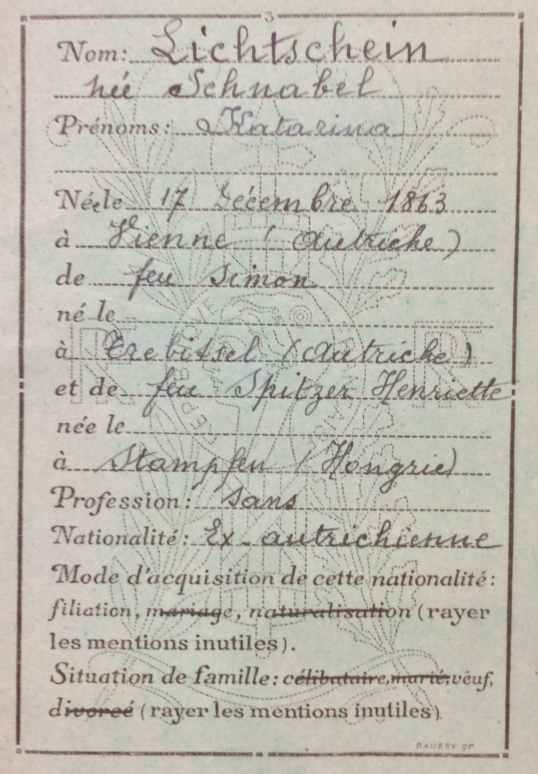 Dossier d’étranger de Katarina LICHTSCHEIN [ADML 120W62]