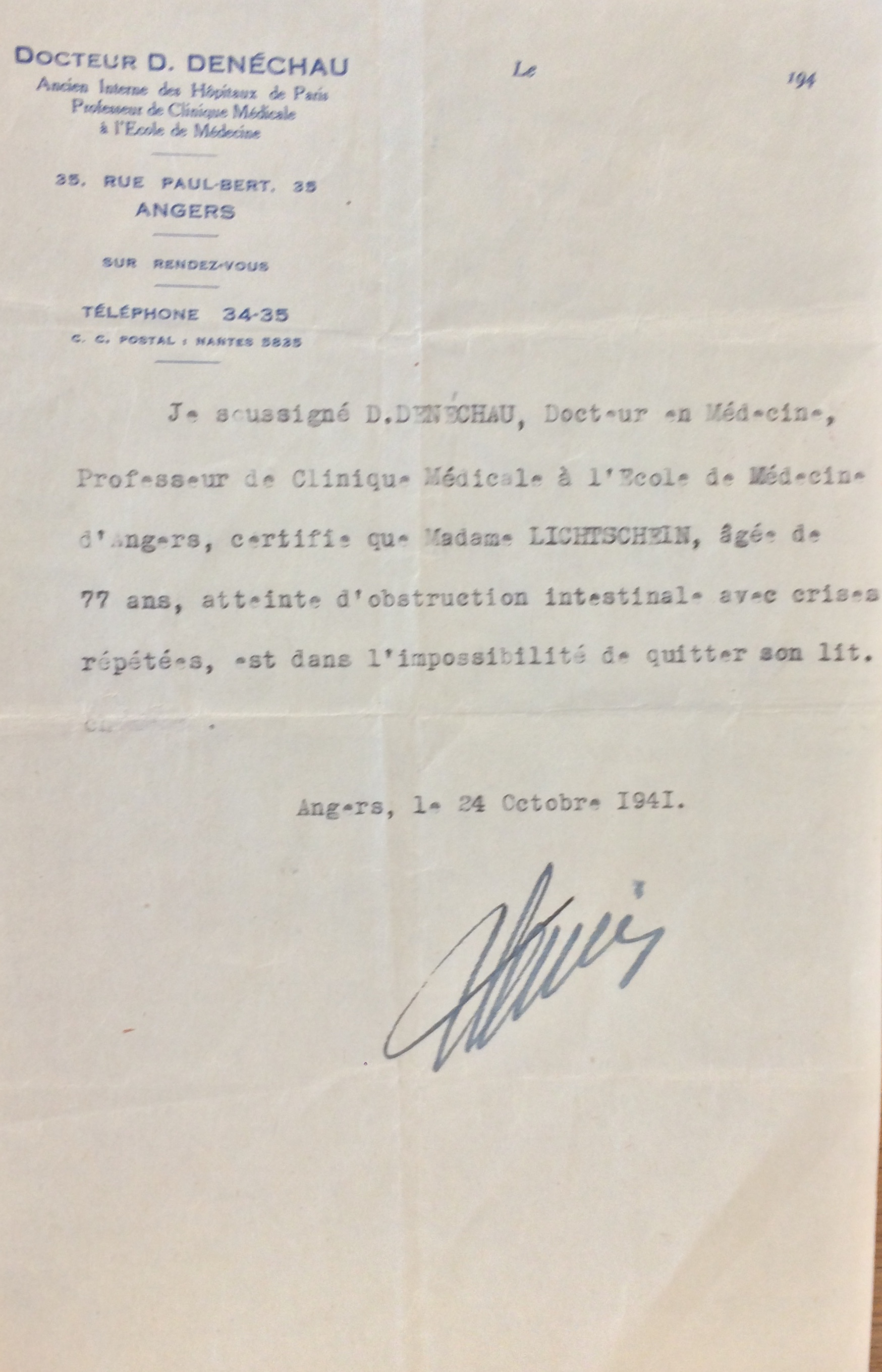 Katharina quitte La Baule entre le 26 novembre et le 25 décembre 1940 pour Angers.