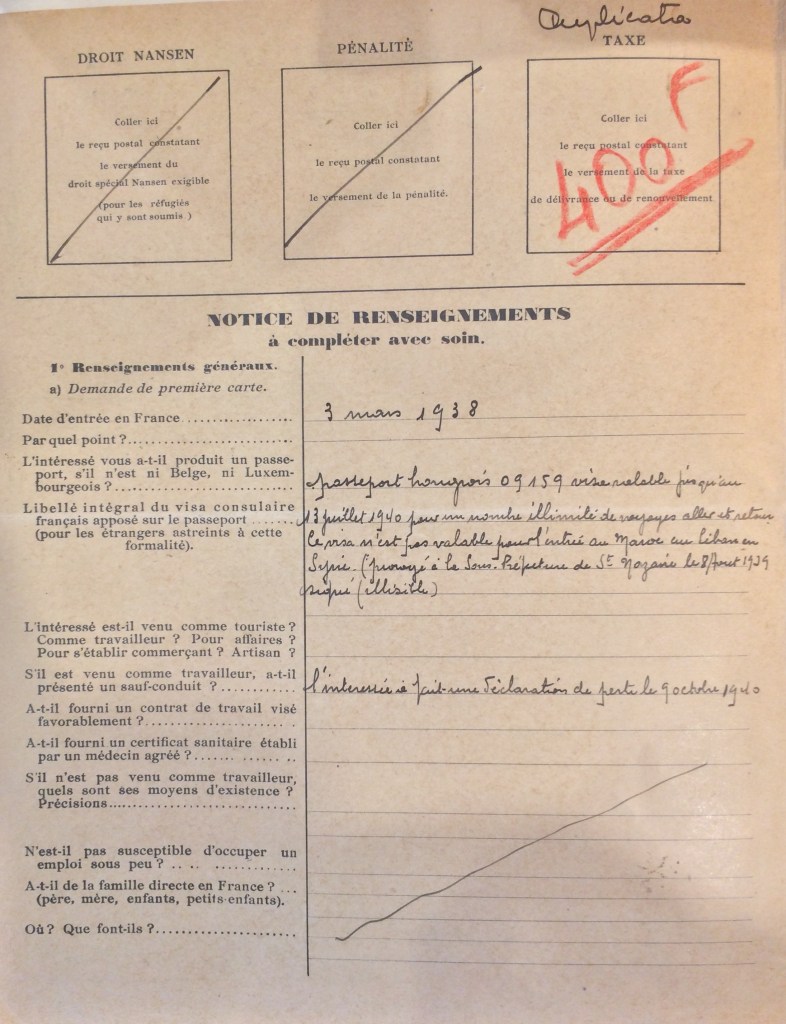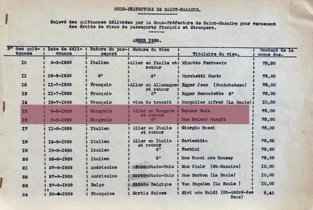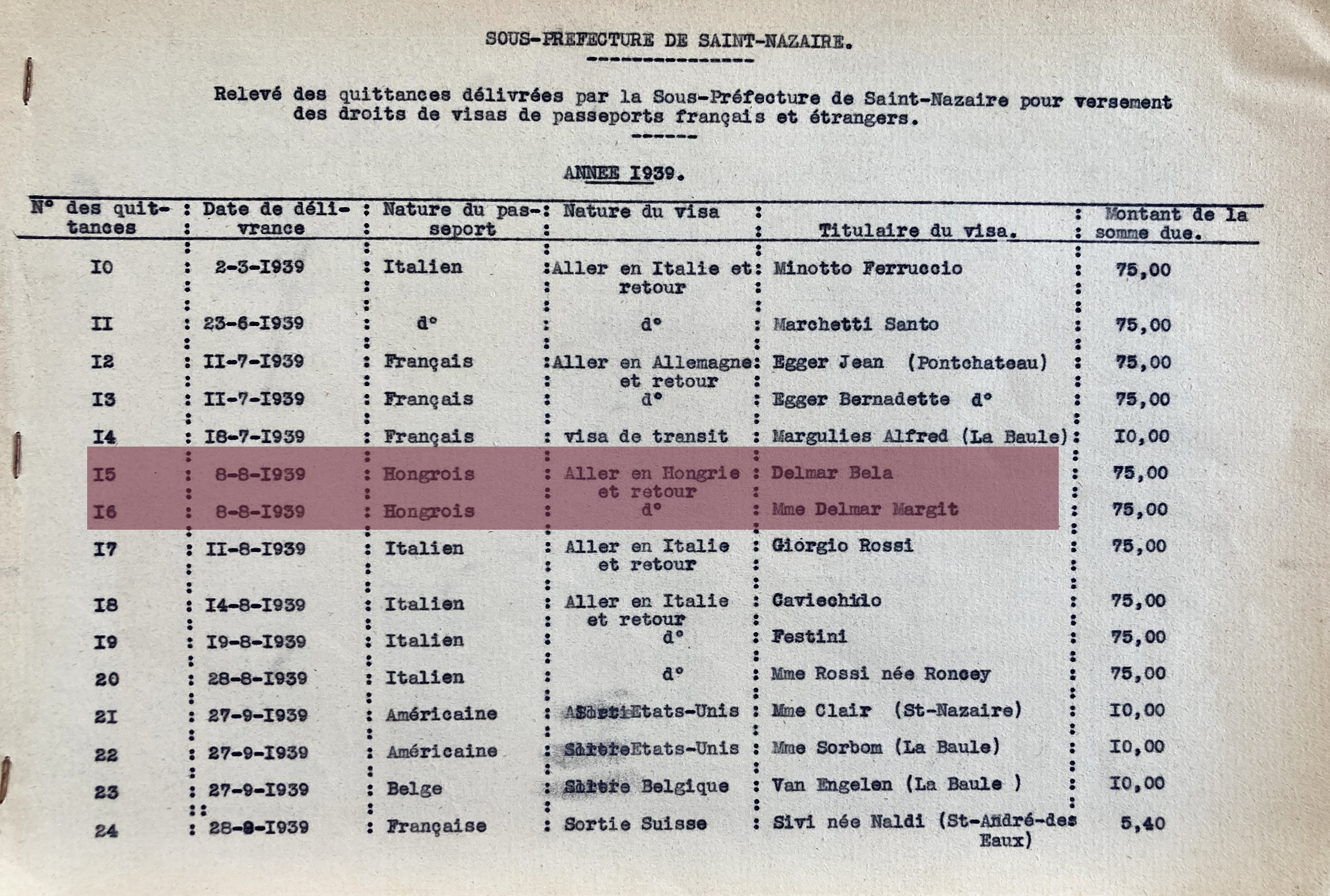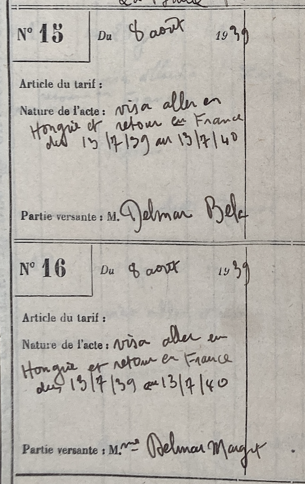 Les époux vont effectuer une séjour en Hongrie avec un visa aller et retour valable du 13 juillet au 13 juillet 1940 durant un an donc.