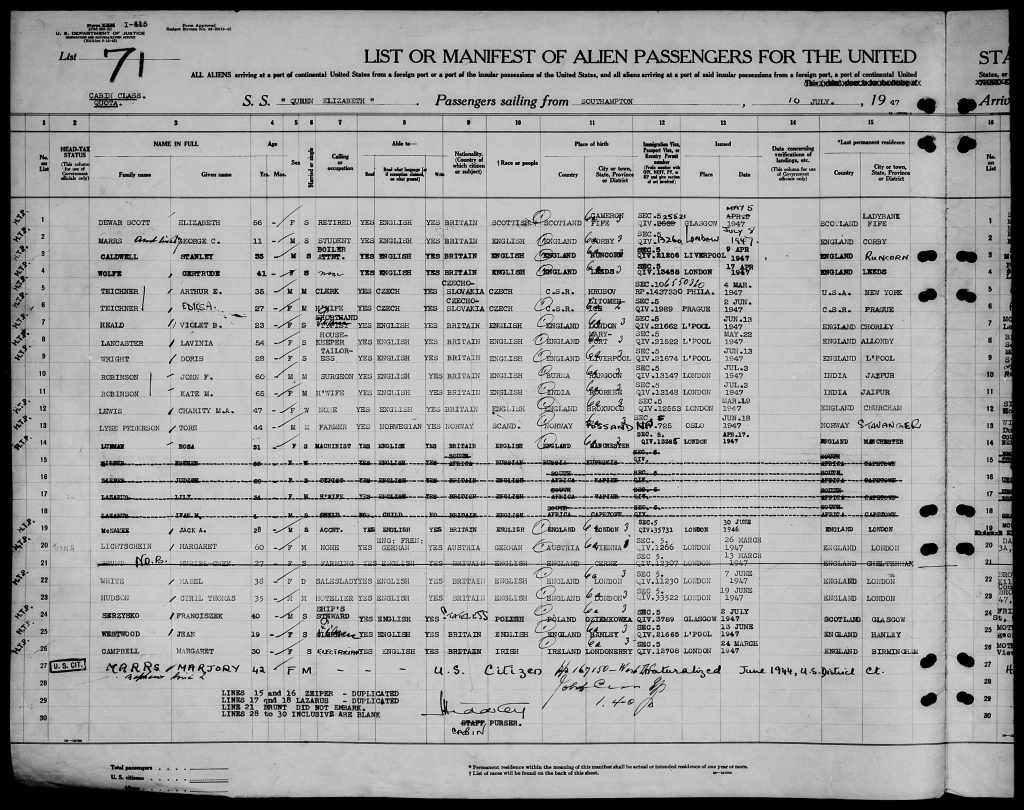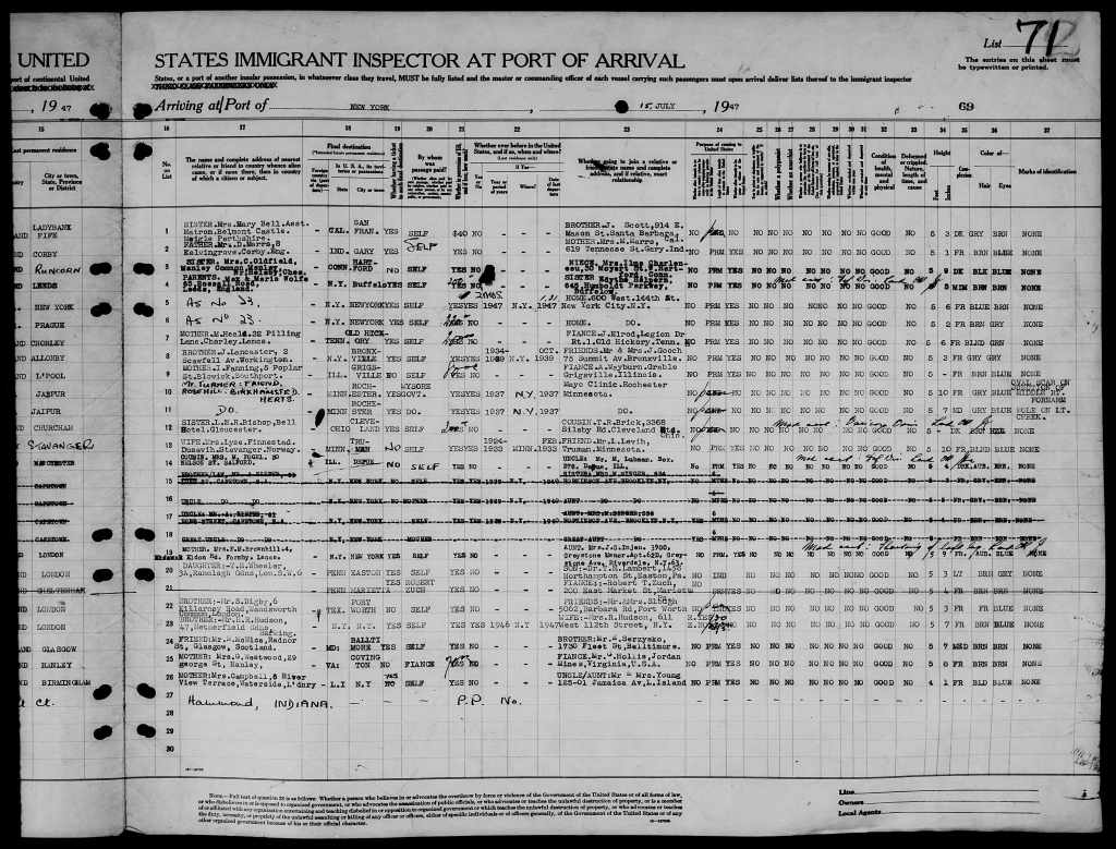 Passenger lists, 15 July 1947 (NARA T715, roll 7418)