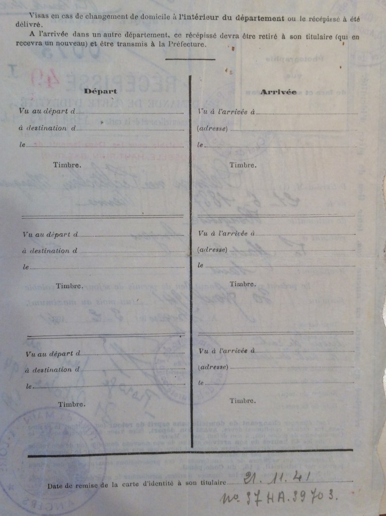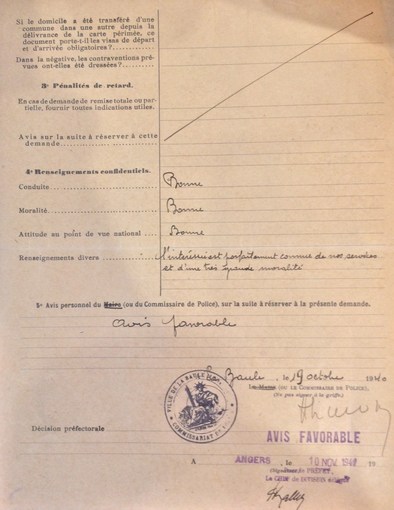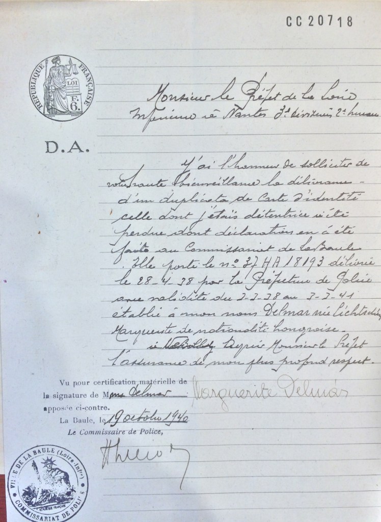 Margot se fait recenser auprès du commissariat de La Baule (ou sous-préfecture de Saint-Nazaire) entre le 27 septembre et le 20 octobre 1940 sous le numéro 63.