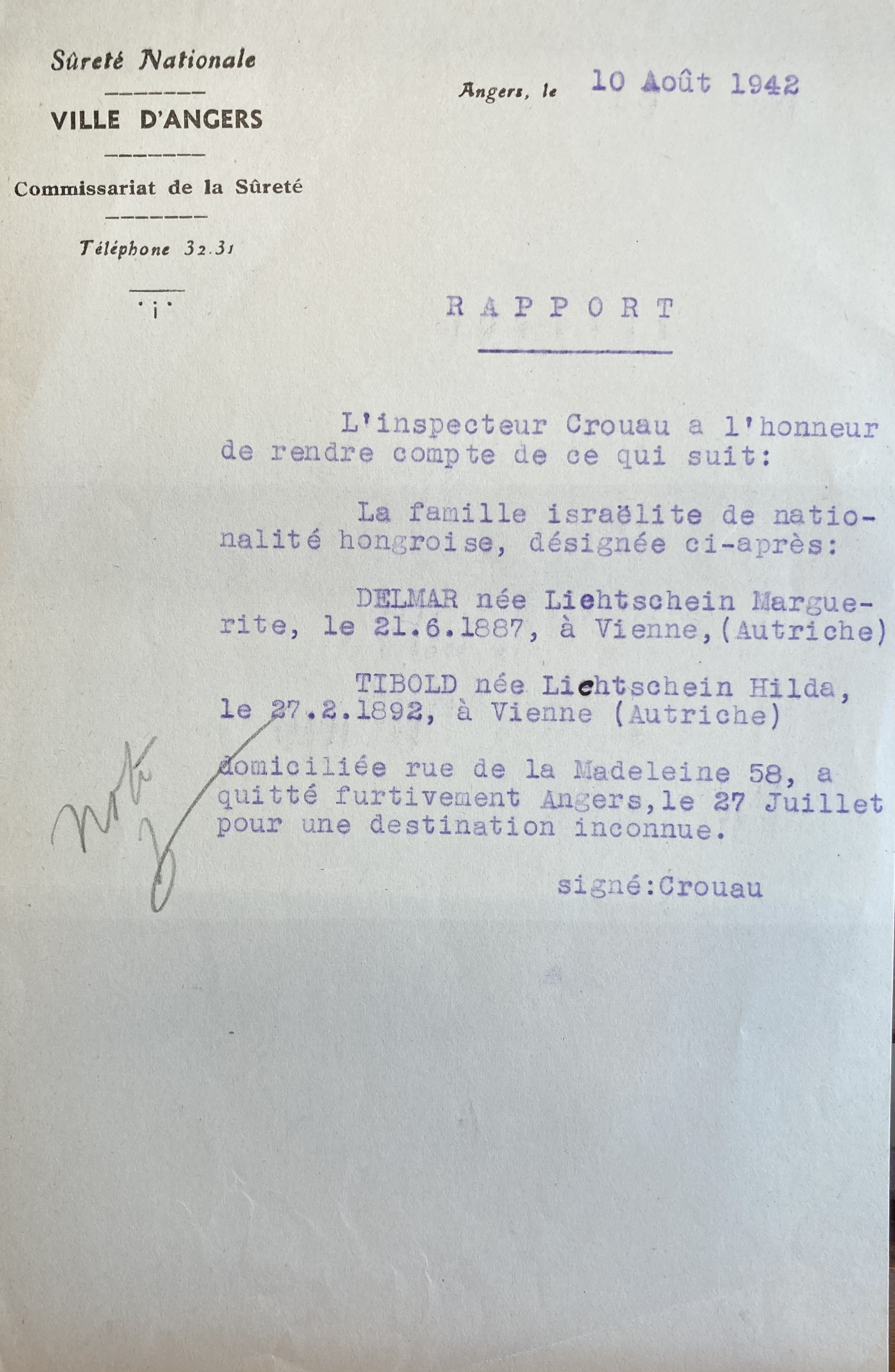 Marguerite (Margit), Hilda TIBOLD, Marie STEINER et son époux Rudolf résident ensemble au 58, rue de la Madeleine à Angers et quittent la commune le 27 juillet 1942.