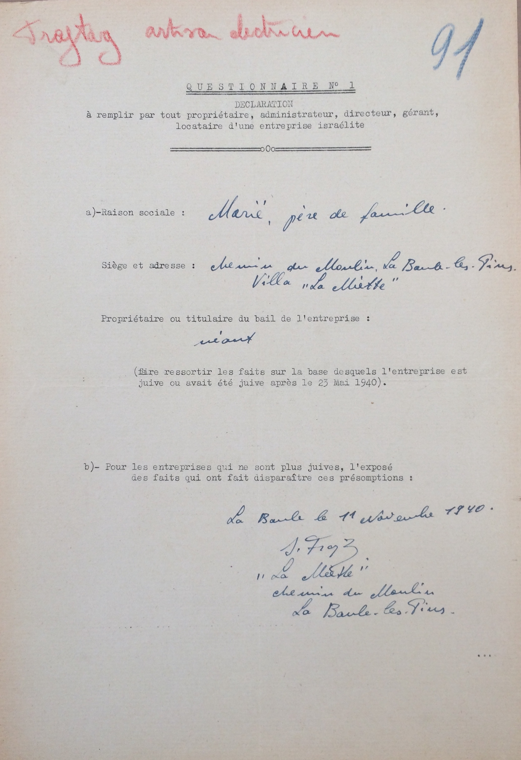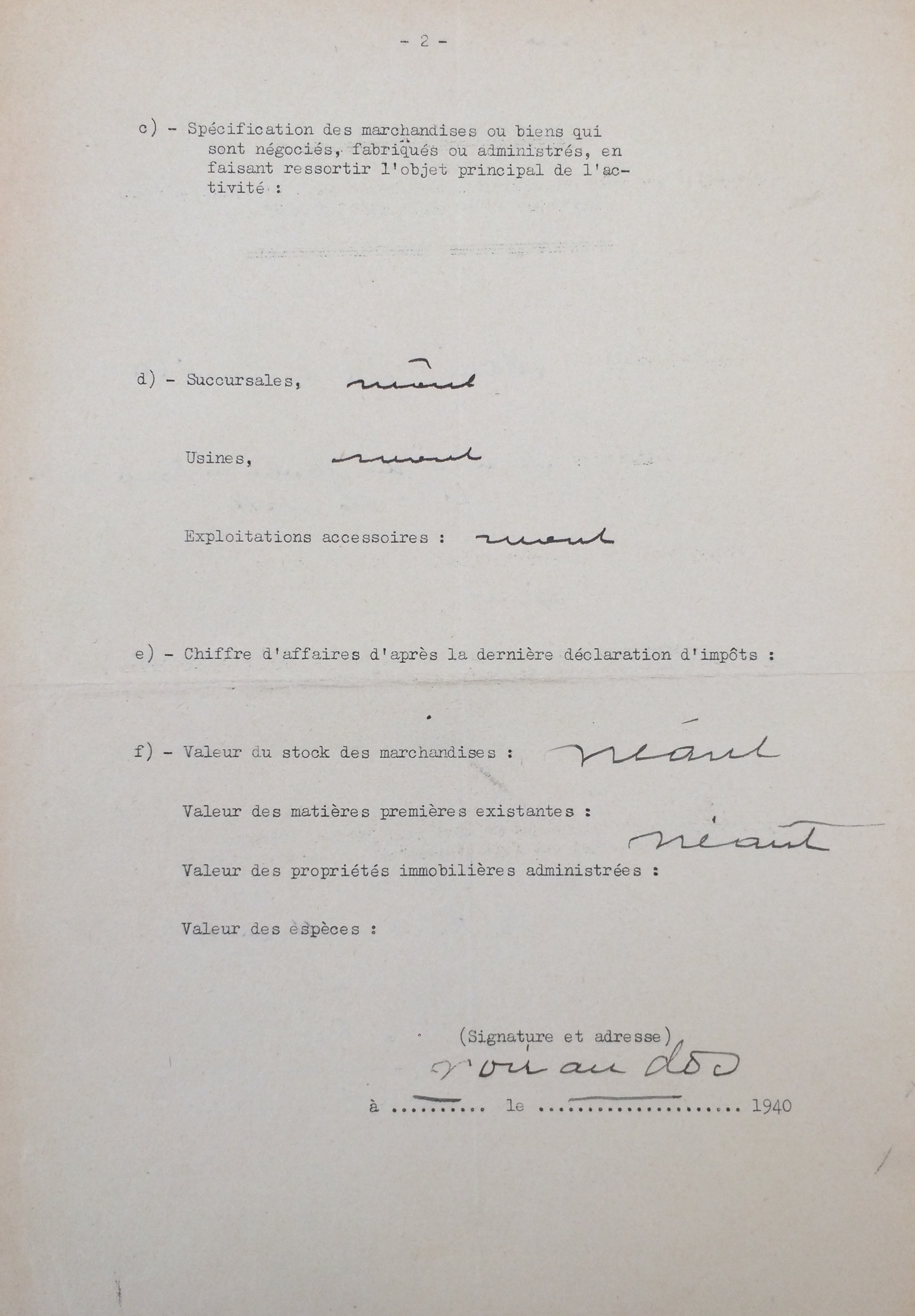Déclaration d’entreprise juive [ADLA 1694W23]