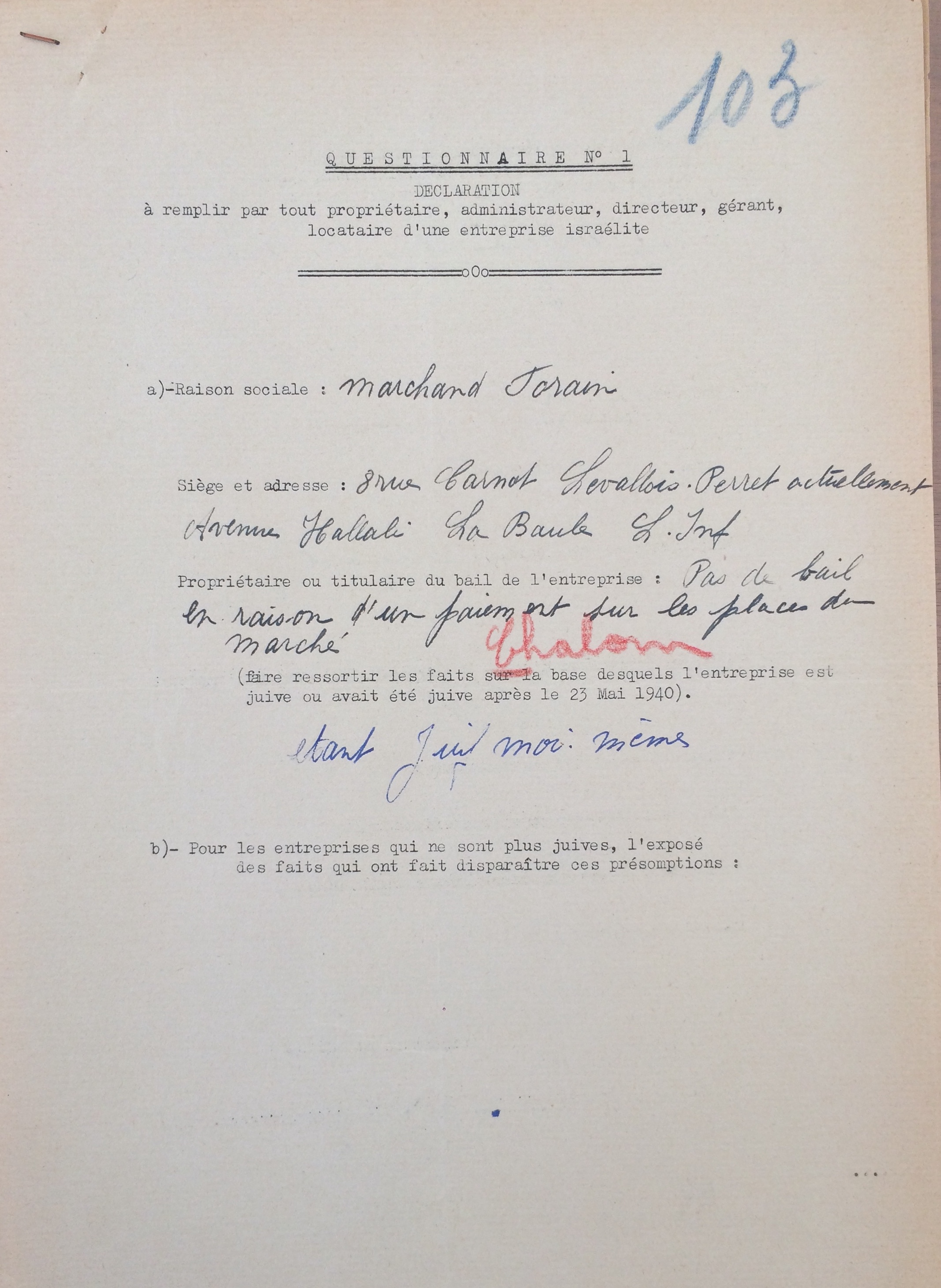 Déclaration entreprise juive [ADLA 1694W23]