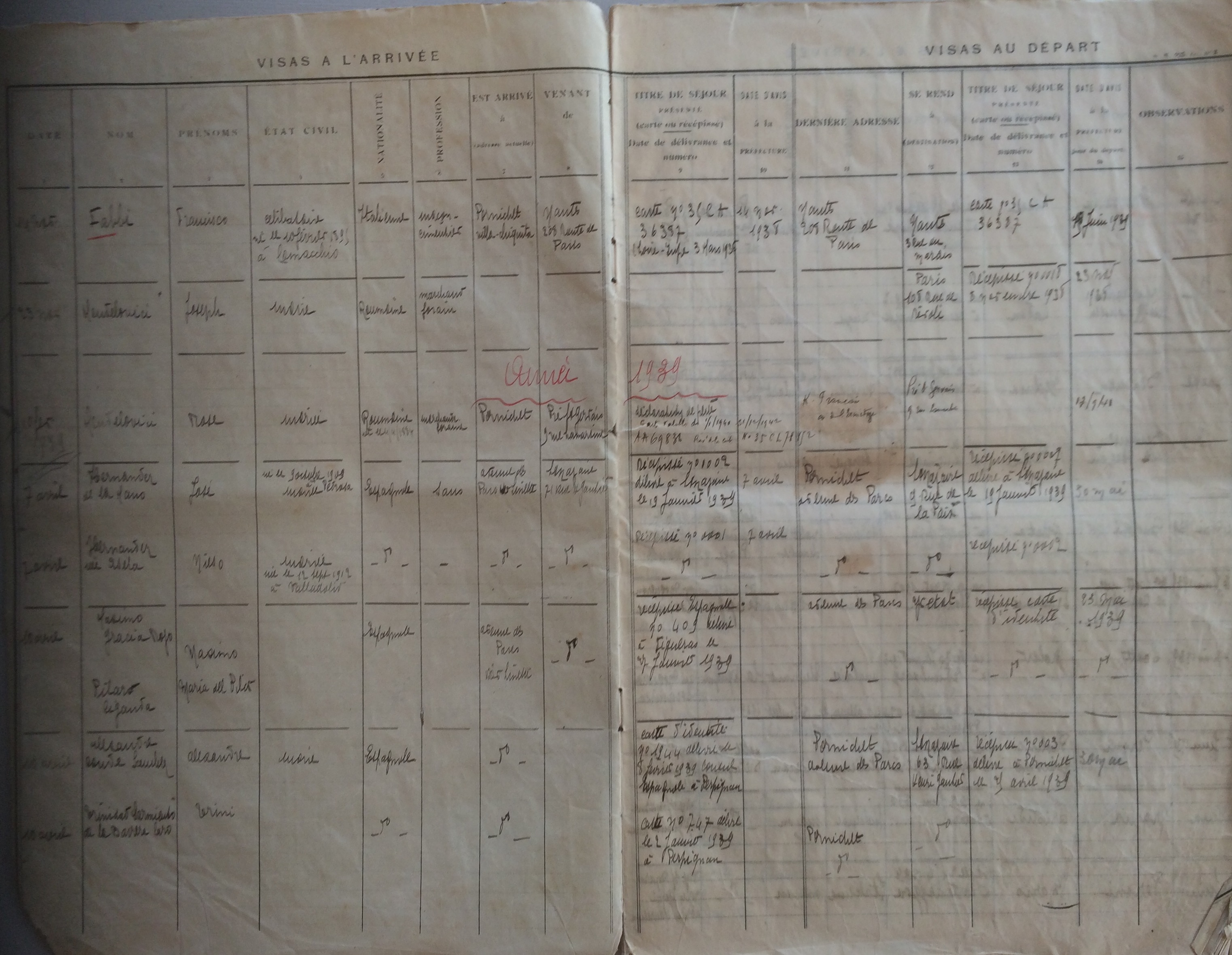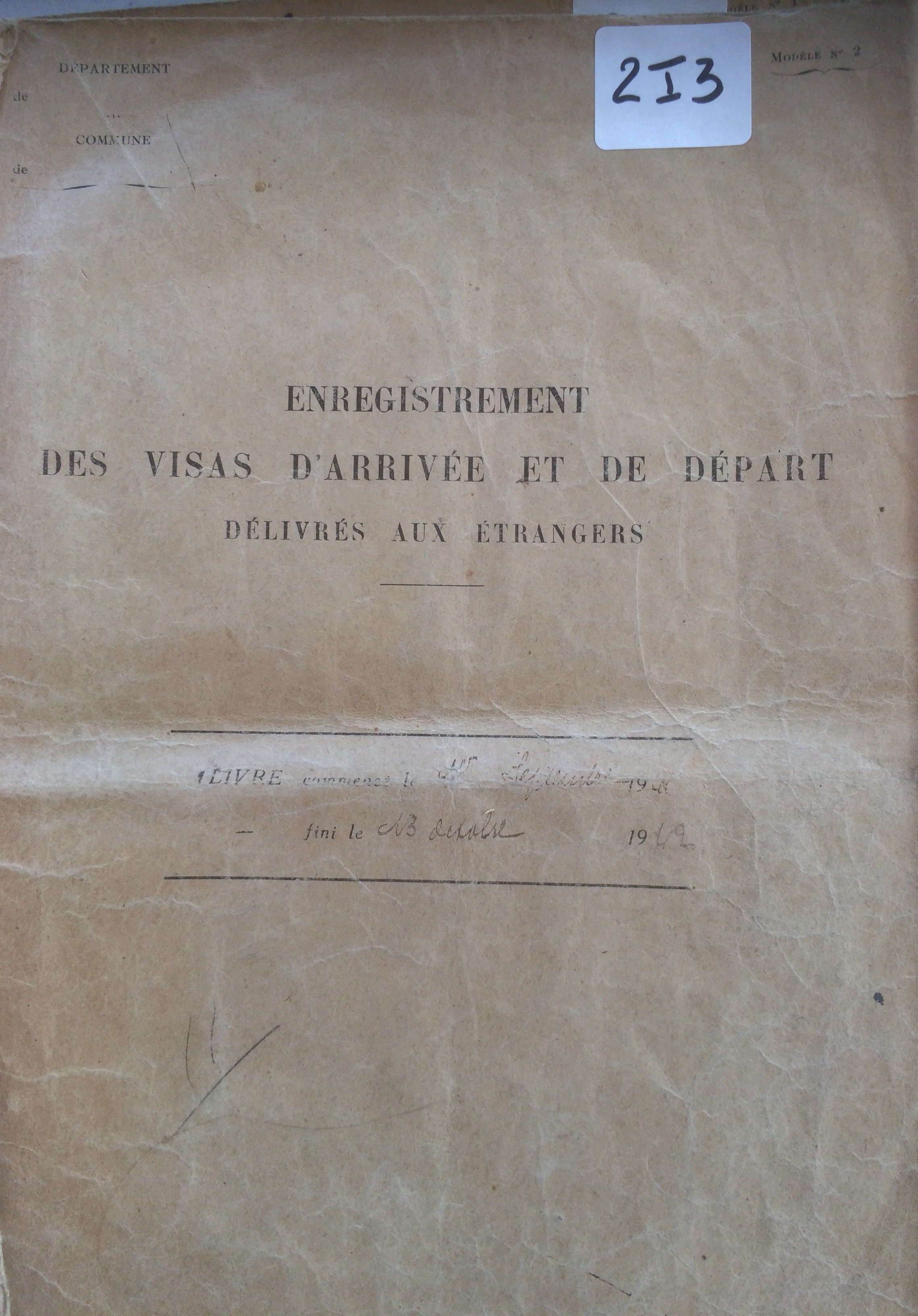 Enregistrement départs arrivées étrangers [Archives Municipales de Pornichet, 2I3]