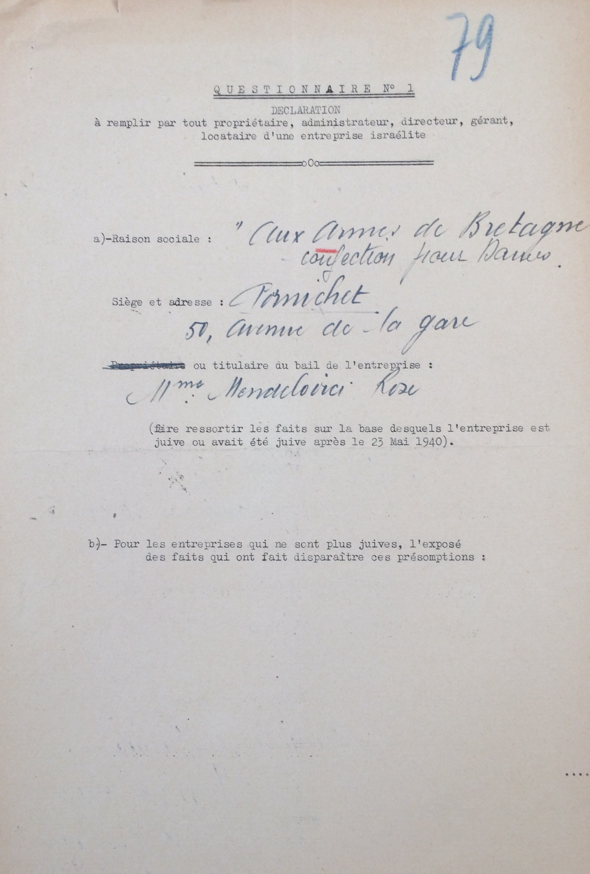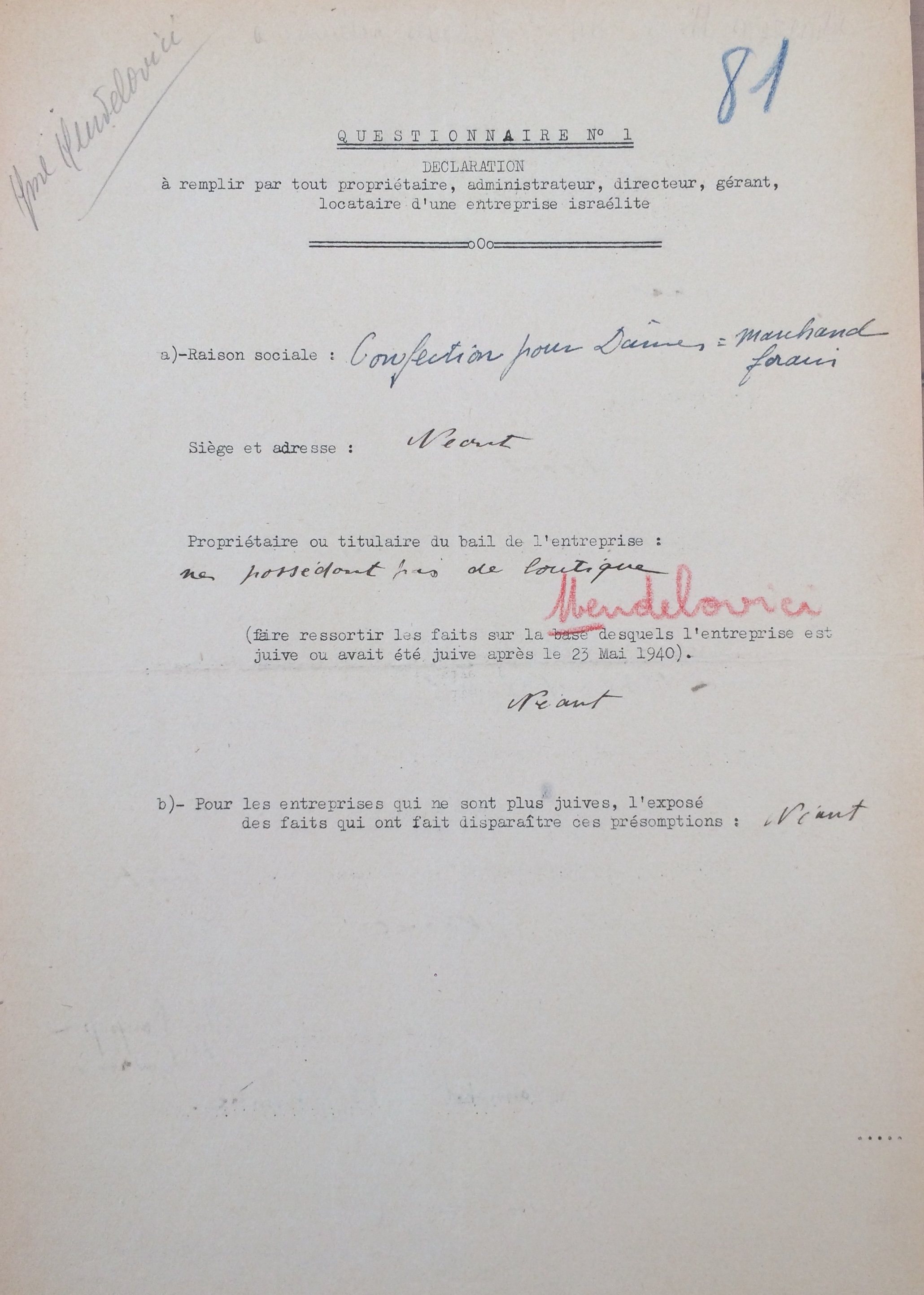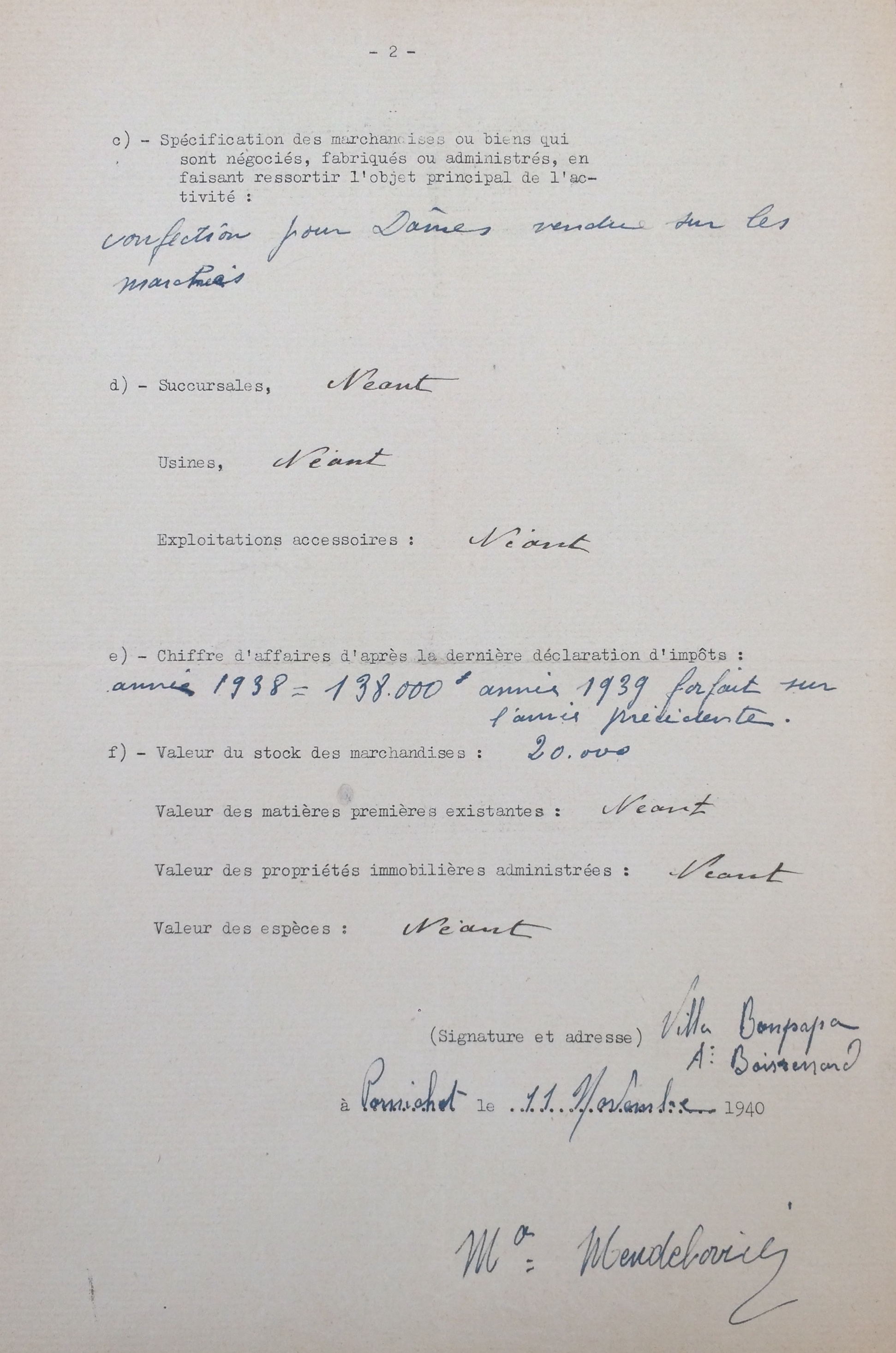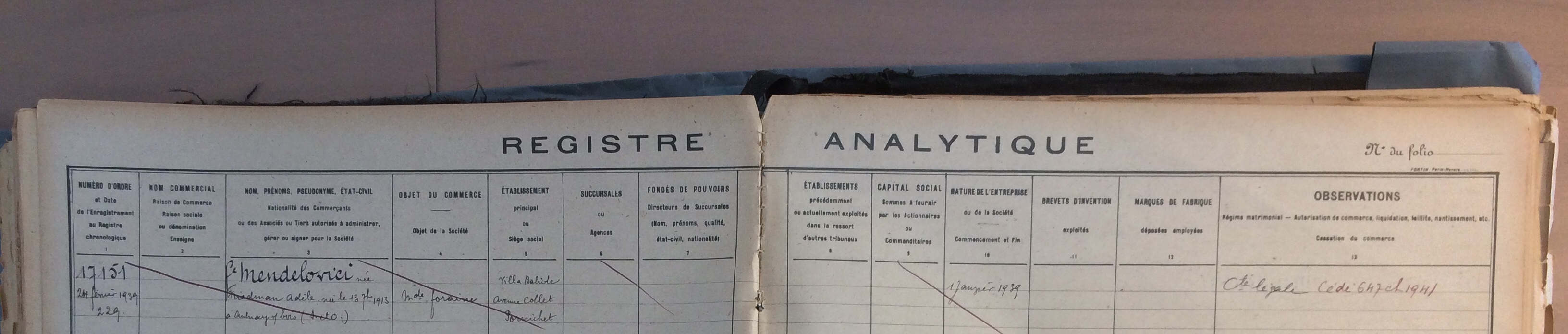 Déclarations commerce 11 novembre 1940 [ADLA 1694W23]