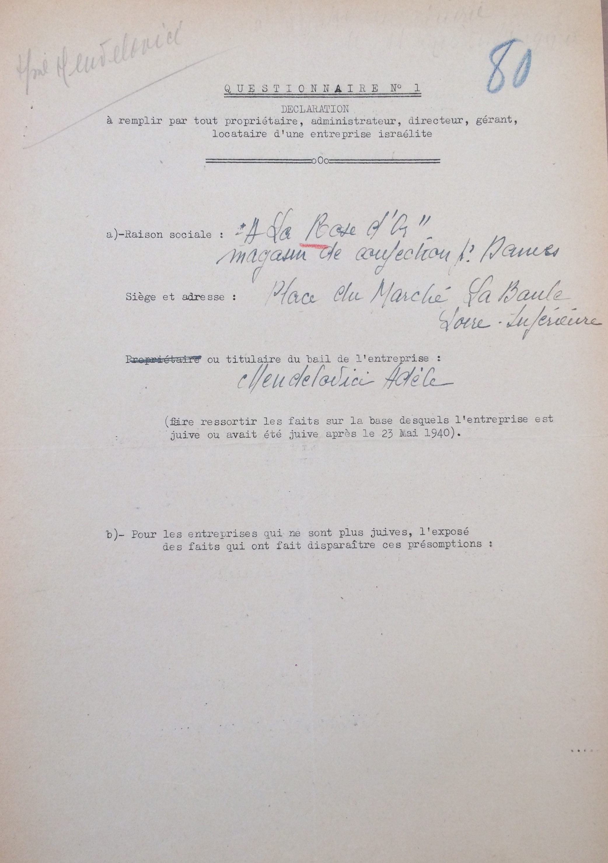 Issu du milieu forain, l’arrivée à Pornichet est l’aboutissement pour la famille d’un travail depuis plus de 30 ans sur les marchés vers la perspective d’enfin monter une affaire dans un commerce en dur. Ils continuent à exercer leur commerce de forain un temps puis s’installent dans deux commerces : le premier « Aux Armes de Bretagne », 50, avenue de la Gare à Pornichet puis un deuxième peu de temps après (1939) « A la Rose d’Or », place du marché à La Baule. Le bail de ces deux commerces est au nom de Rose MENDELOVICI qui est présente dans l’année 1939 à Pornichet mais sont exploités par la femme de Joseph, Adèle. Rose quittera rapidement Pornichet après 1940 pour rester sur la région parisienne.
