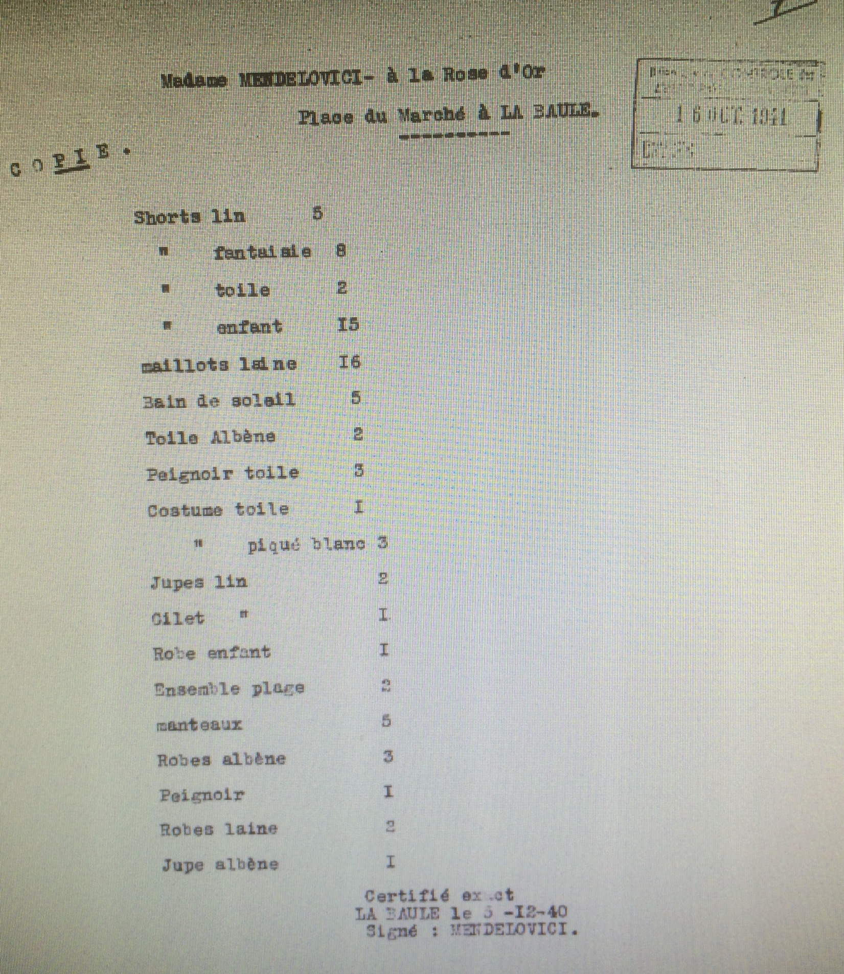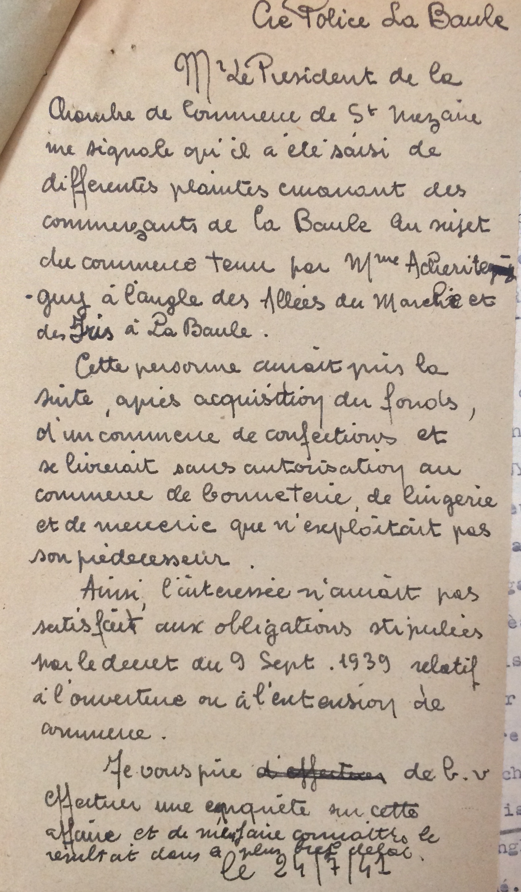 Faut-il y voir une maigre tentative de sursoir aux mesures discriminantes envers les Juifs de la part du sous-préfet ou tout simplement une manière de protéger l’exercice des commerces implantés depuis fort longtemps sur le secteur ? Toujours est-il que le sous-préfet de Saint-Nazaire somme la toute nouvelle propriétaire de fermer son commerce de la Baule.
