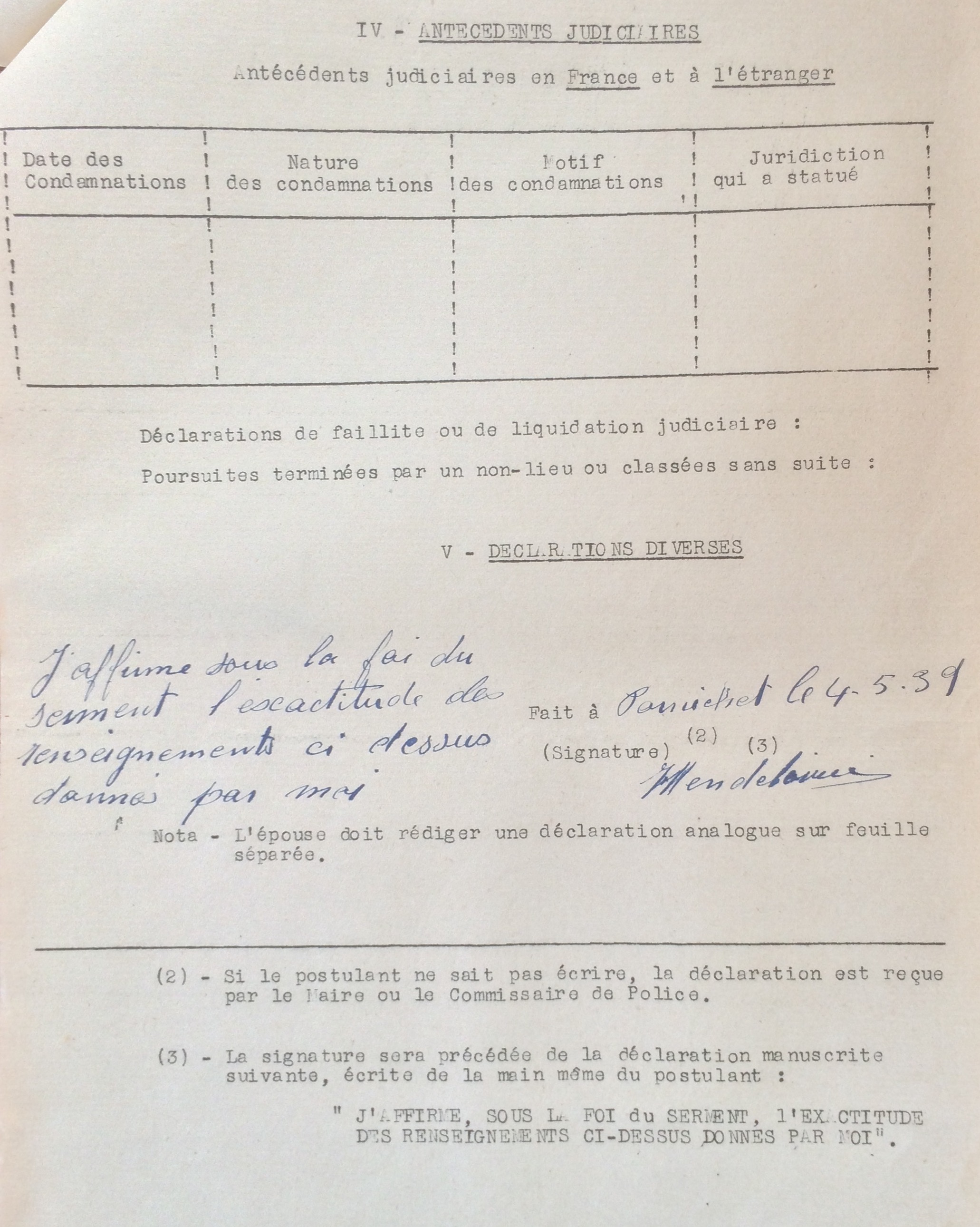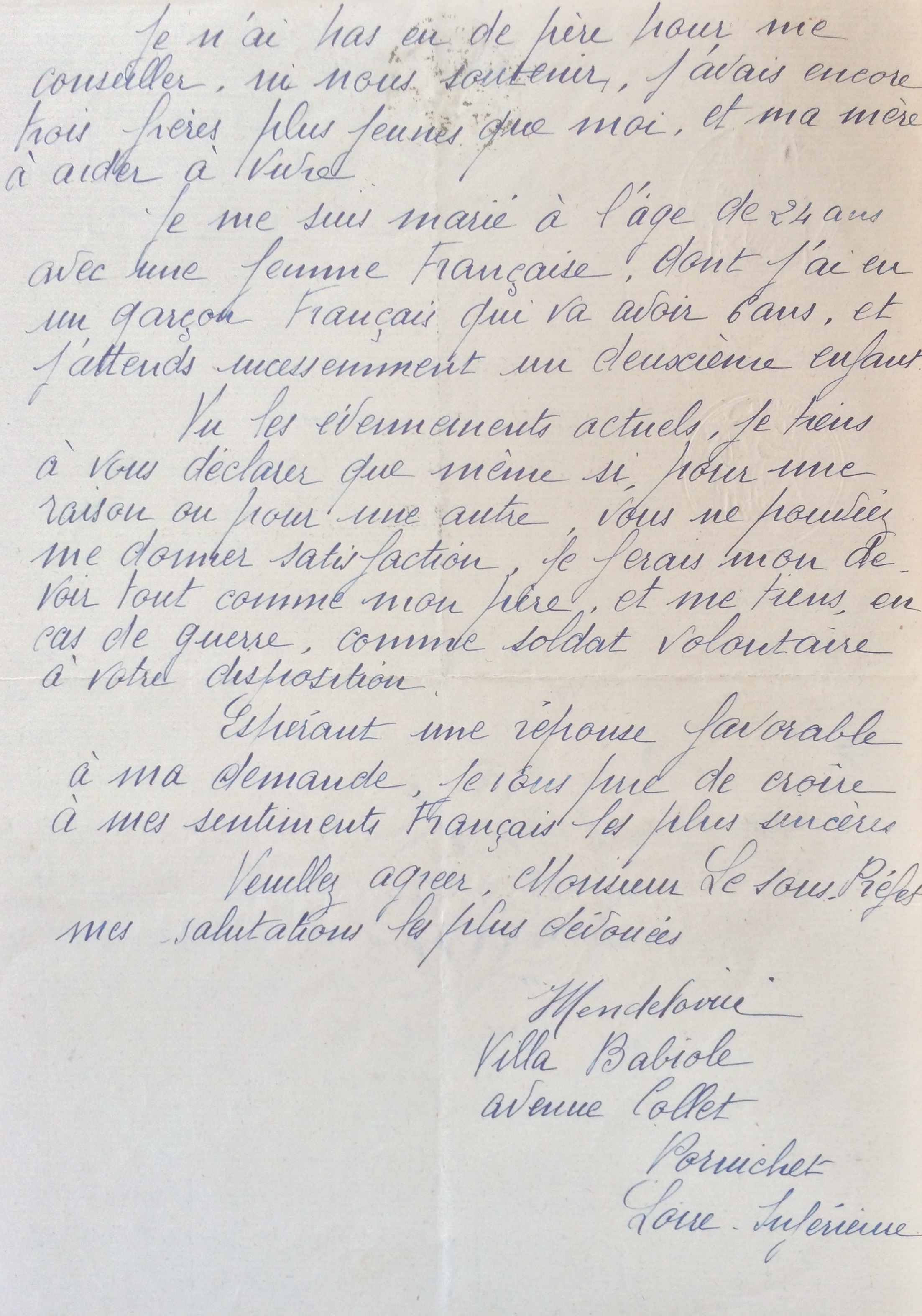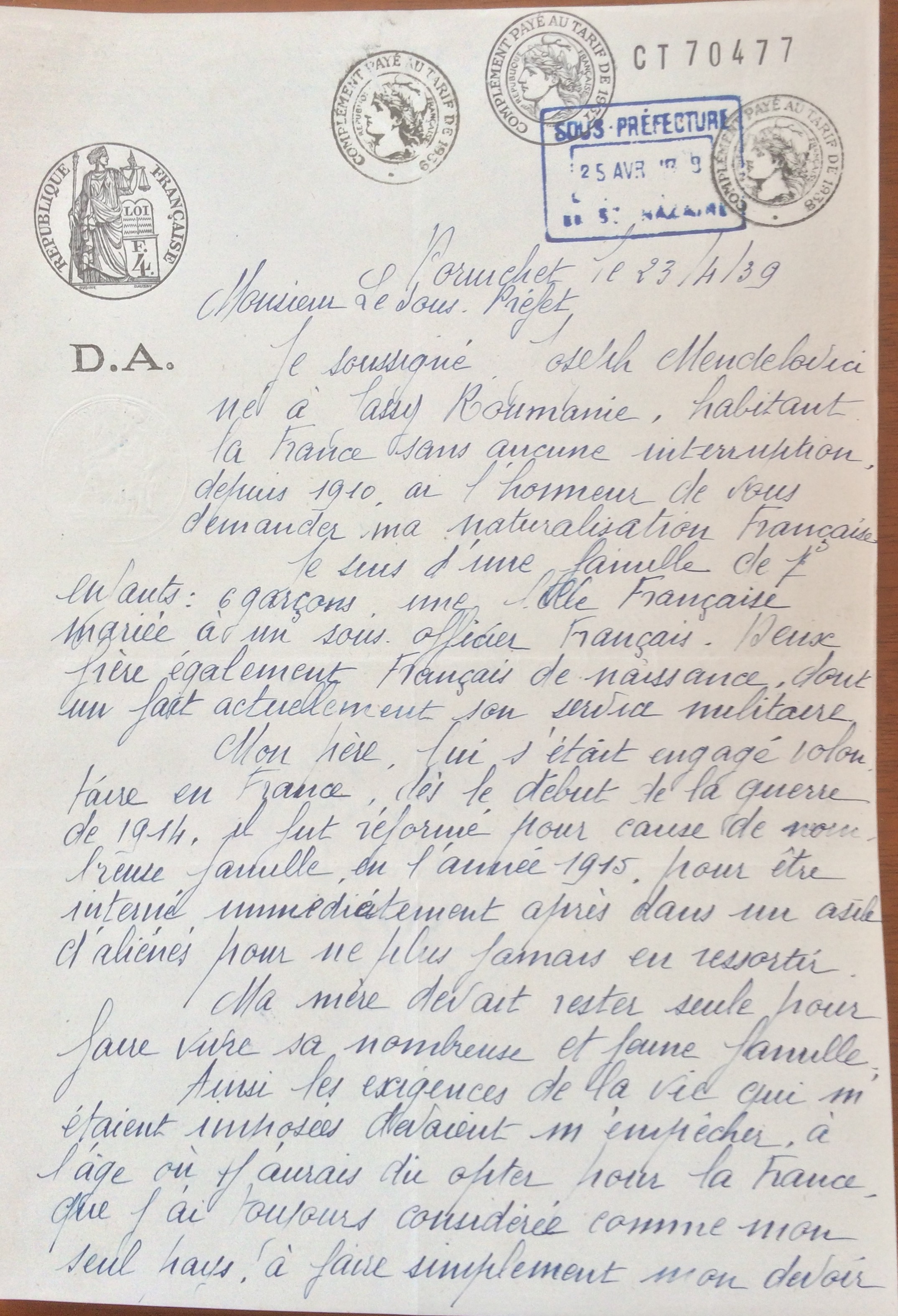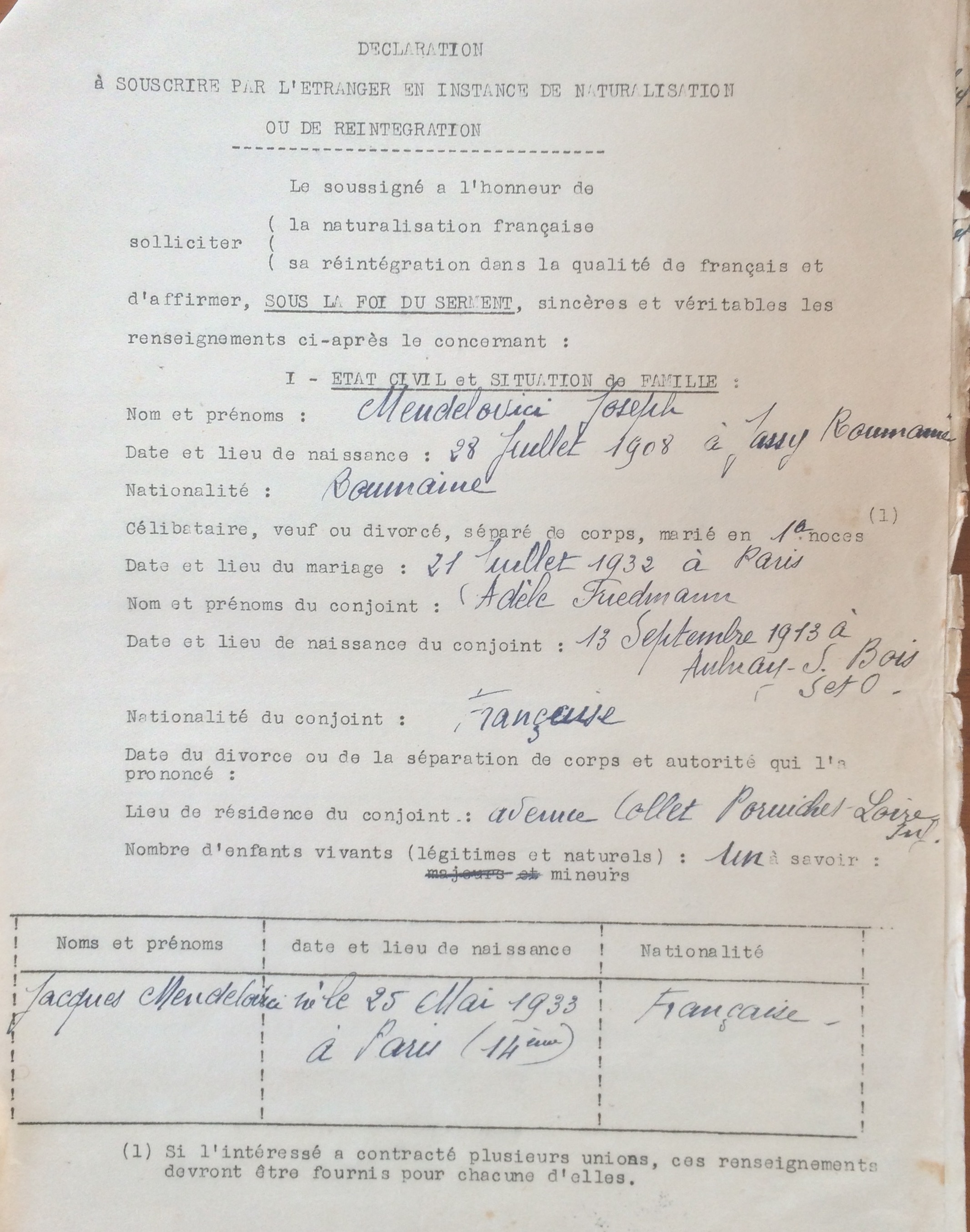 Demande de naturalisation de Joseph MENDELOVICI [Archives Municipales de Pornichet]