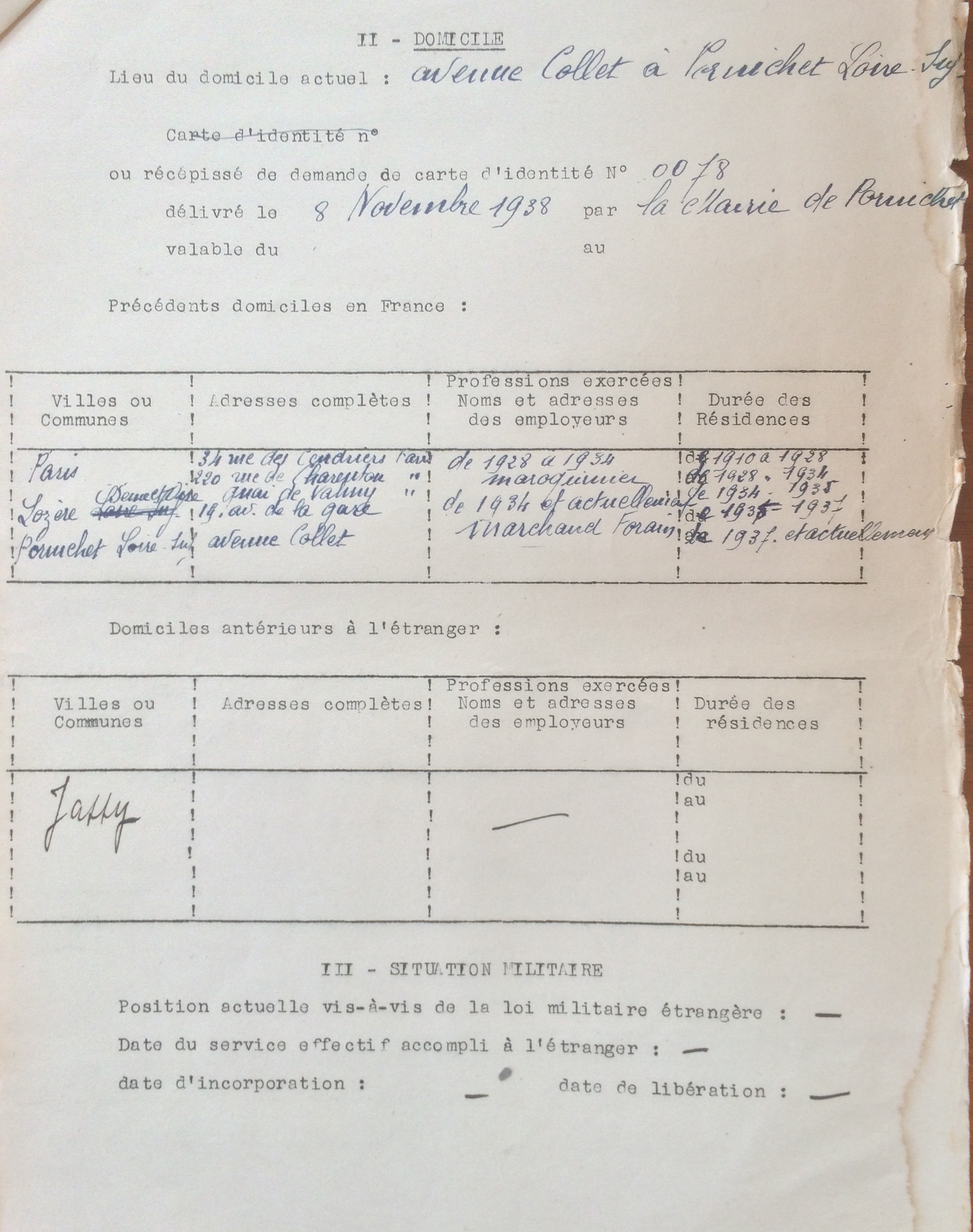 La mention juive est apposée sur les cartes d’identité (ou leurs récépissés) en octobre/novembre 1940. Rose MENDELOVICI (la mère de Joseph) y verra cette mention apposée sur son récépissé, et la préfecture (ou sous-préfecture), faute de tampon, le fera de manière manuscrite.