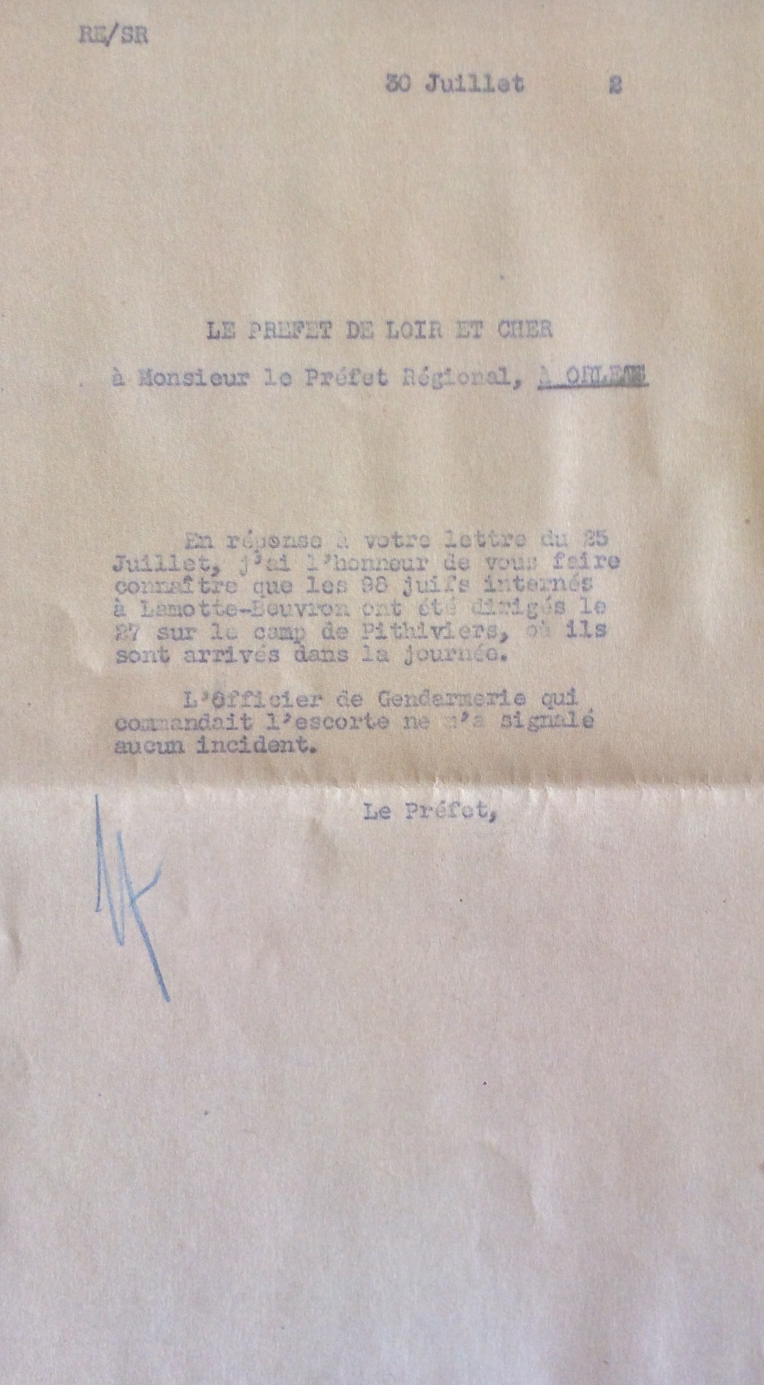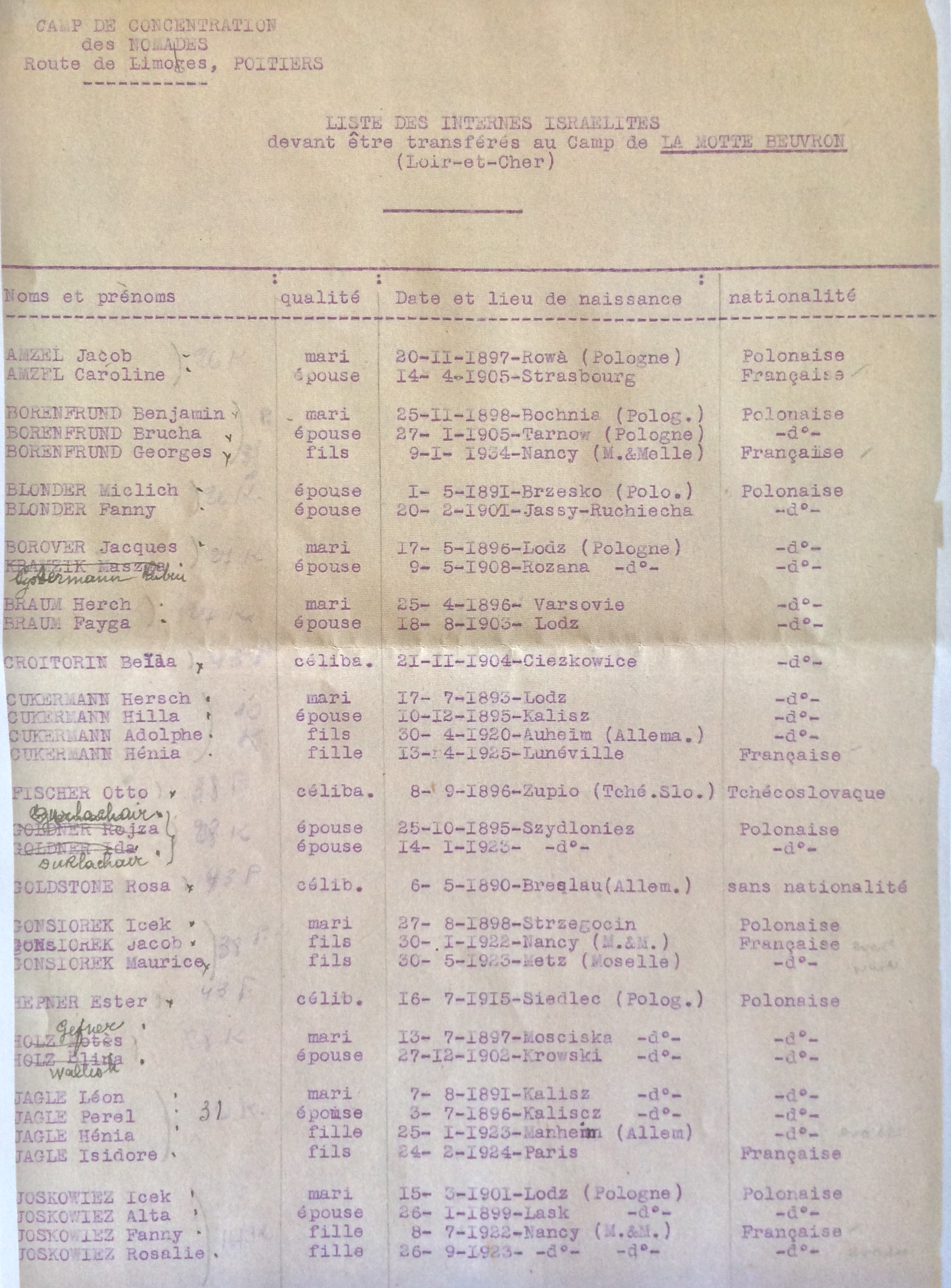 Liste des internés israélites et transfert [Archives Départementales du Loir-et-Cher, 629W9]