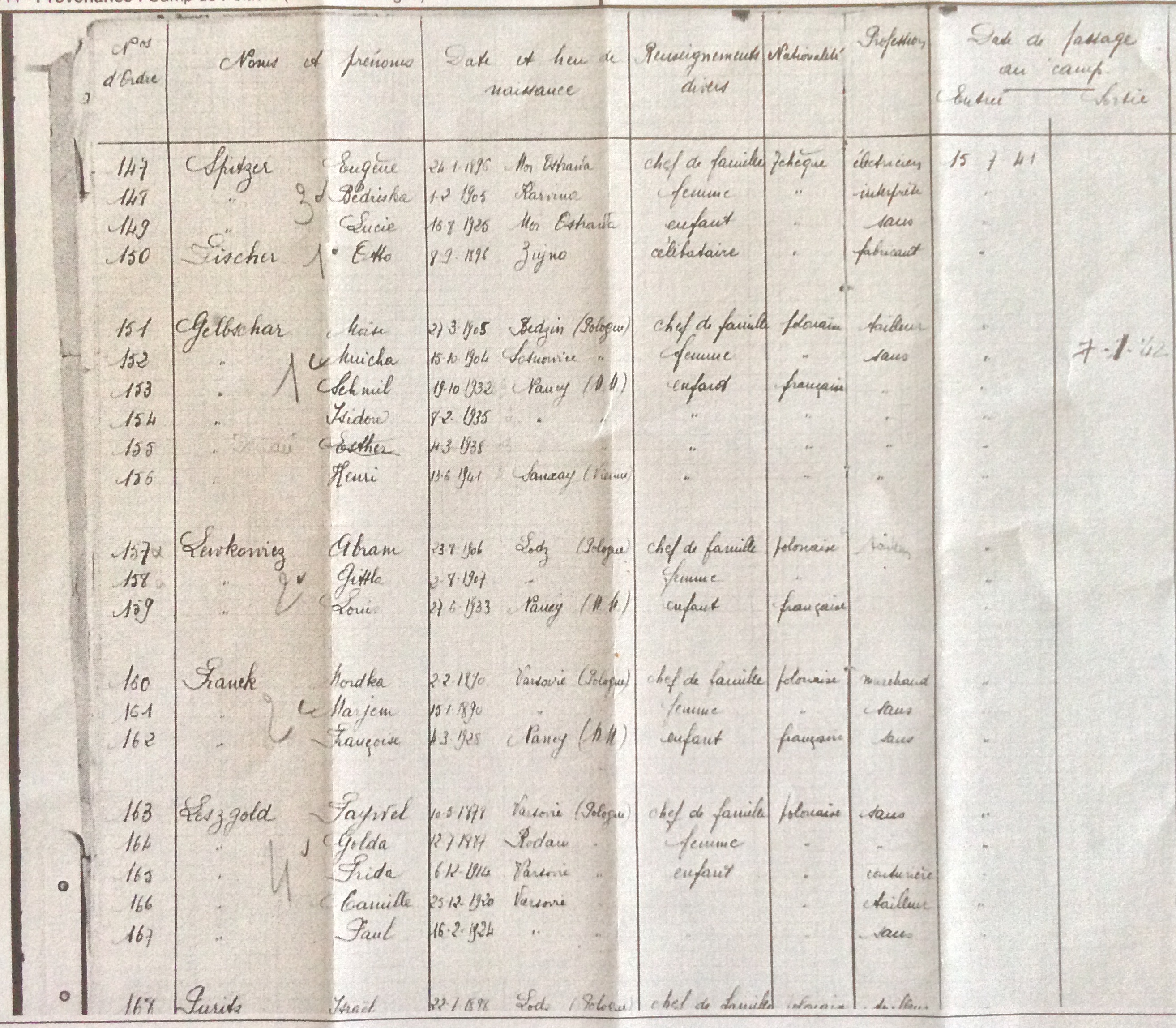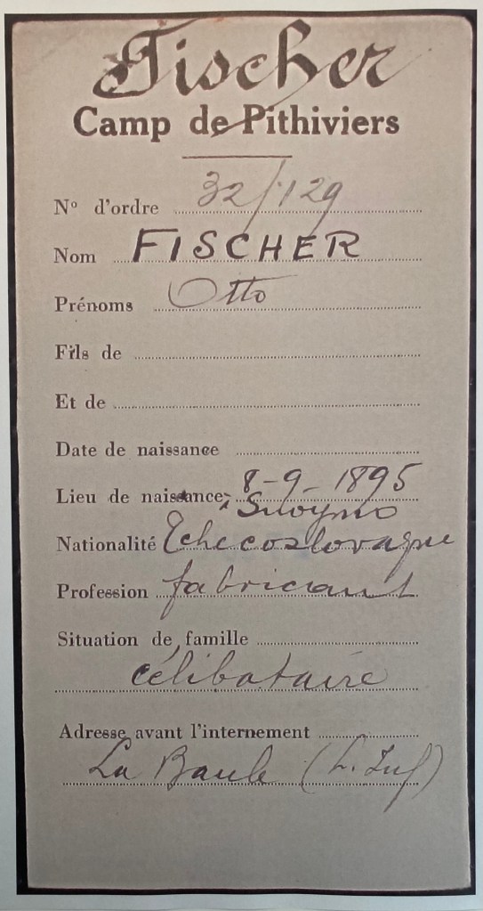 Otto FISCHER est arrêté et déporté par le convoi numéro 13 de Pithiviers à Auschwitz le 31 juillet 1942 (en même temps que la famille SPITZER).
