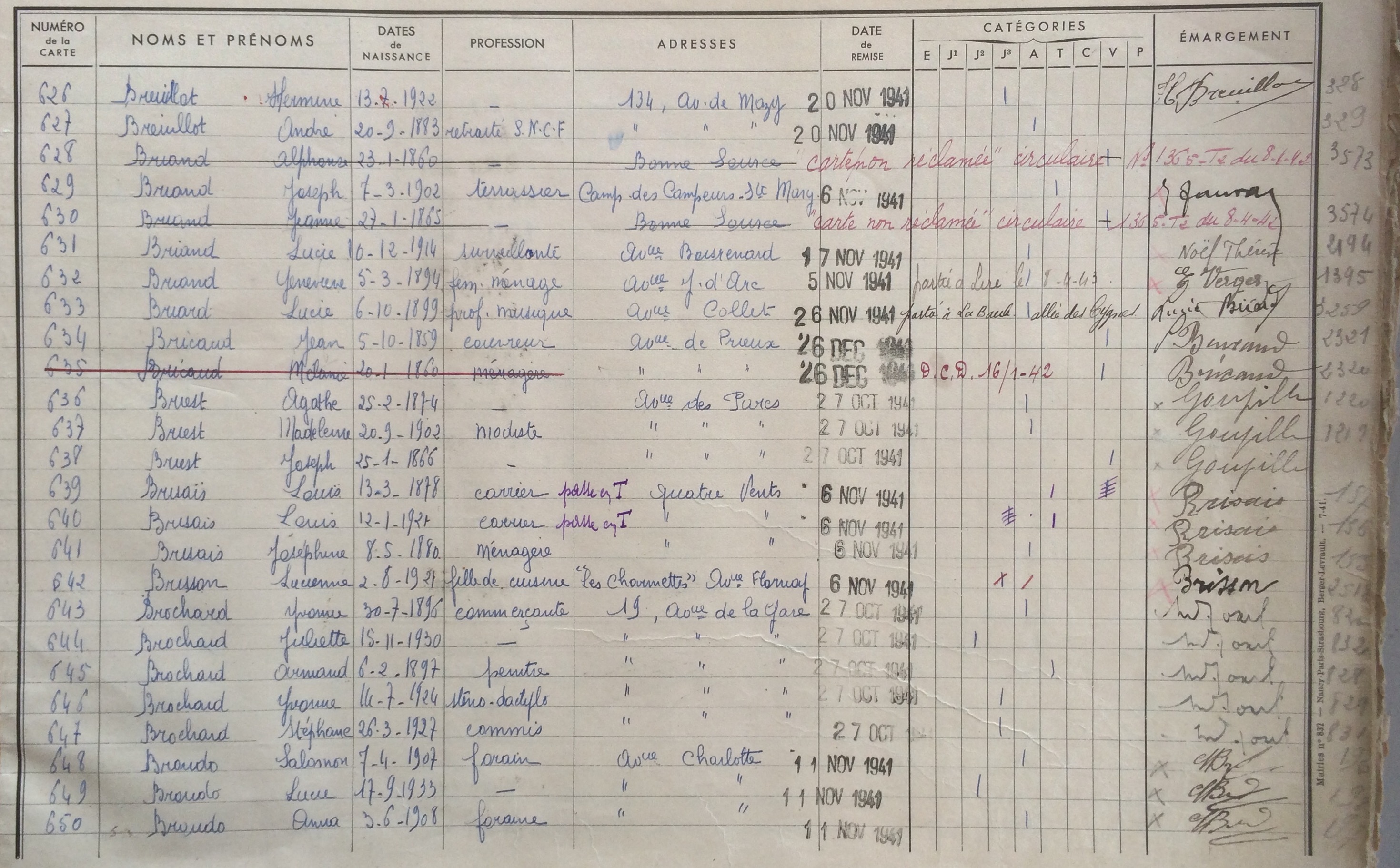 Salomon BROUDO vient récupérer pour toute la famille les cartes d’alimentation auprès de la mairie de Pornichet le 11 novembre 1941.