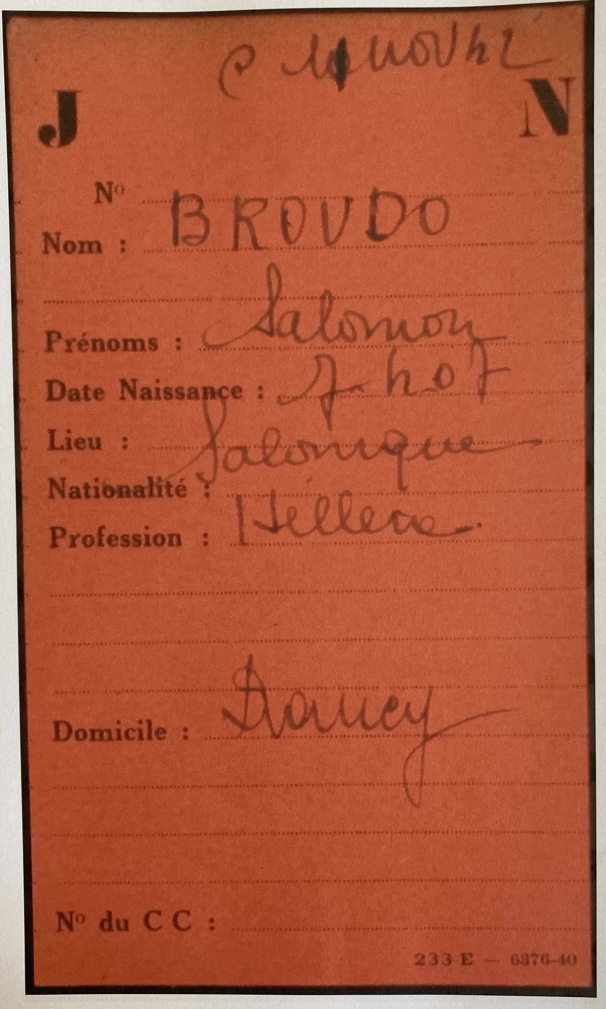 Fiche de BROUDO Salomon [Fichiers Préfecture Individuel Adulte F9/5636]