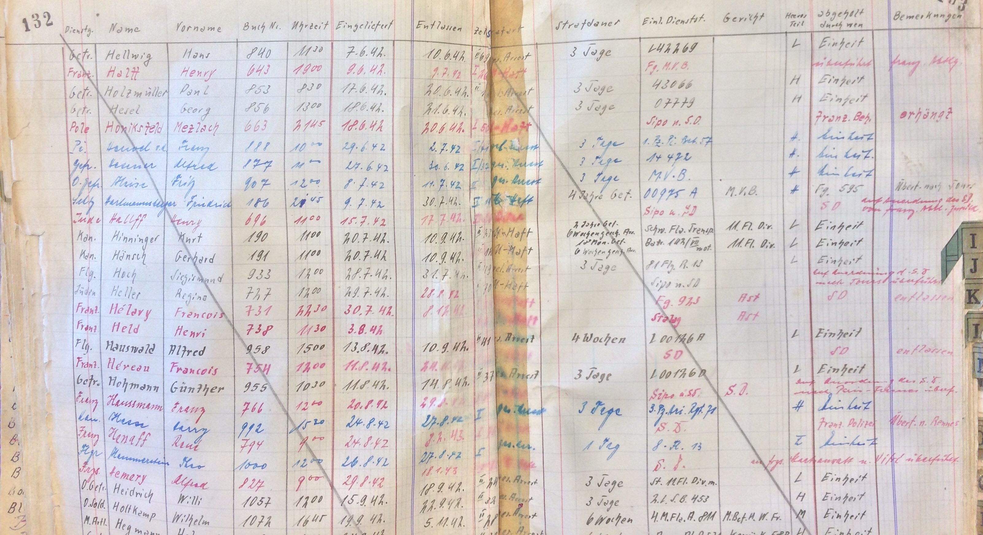 Le motif de la détention n’est pas précisé sur le registre. La prison du Pré Pigeon est gérée conjointement par les Autorités Allemandes et les Autorités Françaises. Lorsque ce sont les allemands qui incarcèrent, les détenus sont dirigés et gérés dans le côté allemand de la prison. Lorsque ce sont les autorités françaises qui incarcèrent, ils sont cette fois-ci gérés et incarcérés côté français. Les Autorités allemandes rendent compte plus ou moins régulièrement et de façon très succincte aux autorités françaises du sort des prisonniers incarcérés.