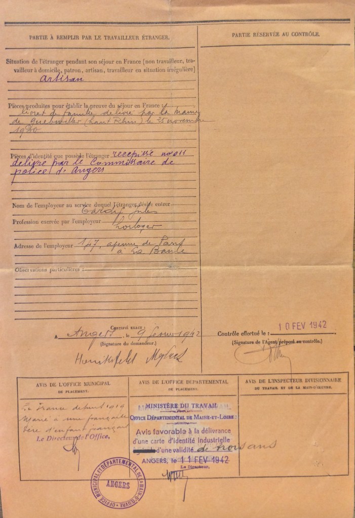 La Préfecture de Loire-Inférieure liste par ailleurs les ressortissants slovaques, polonais, autrichiens et allemands et une fiche (sans date) est établie à son nom.