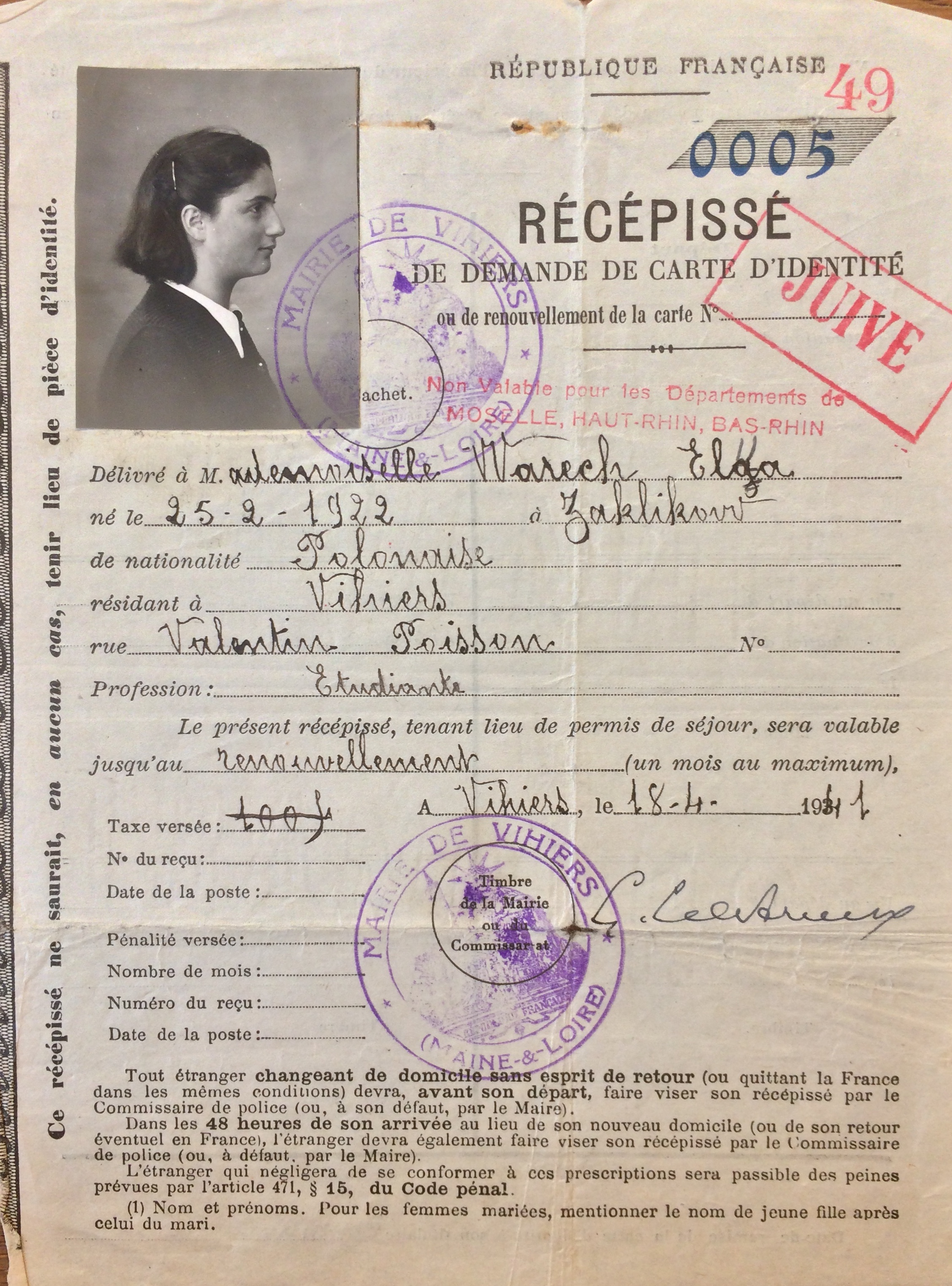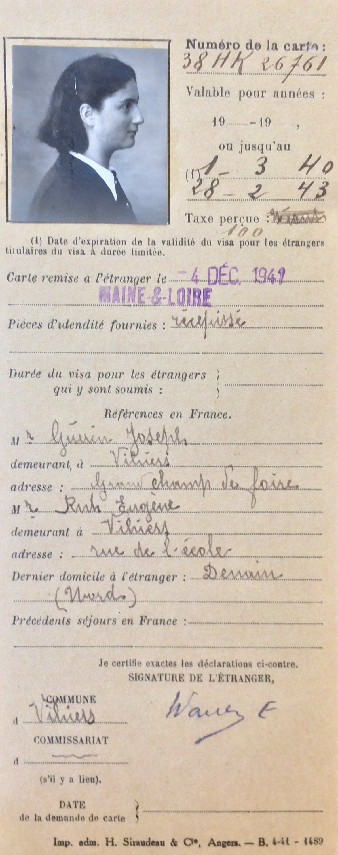Puis toute la famille se réfugie un mois plus tard dans le département du Maine-et-Loire à Vihiers rue Poisson Valentin.
