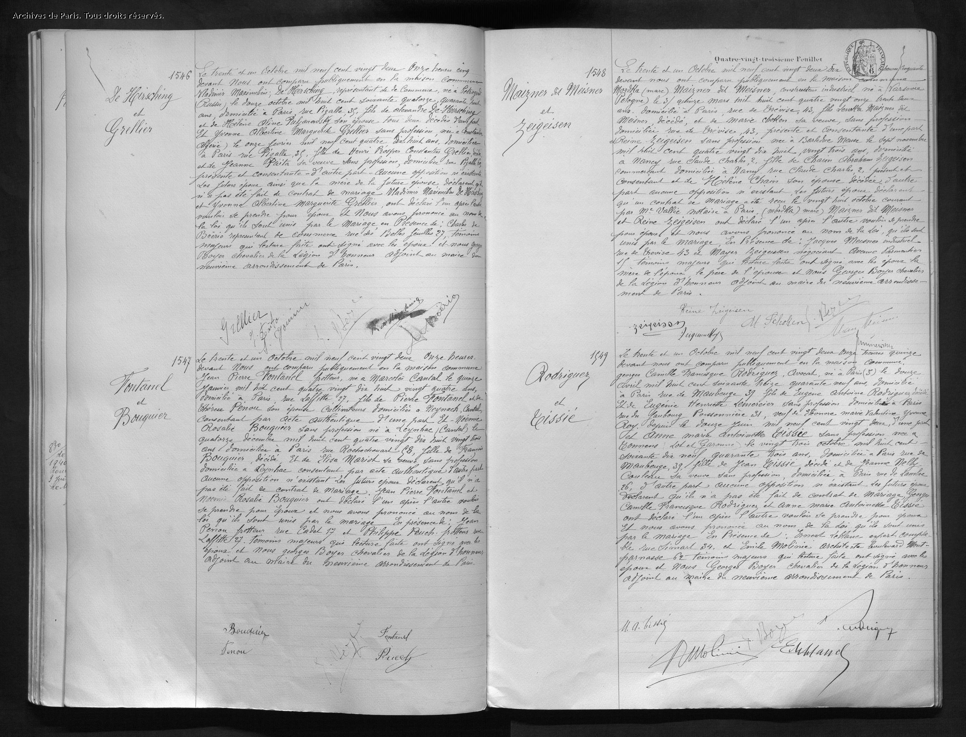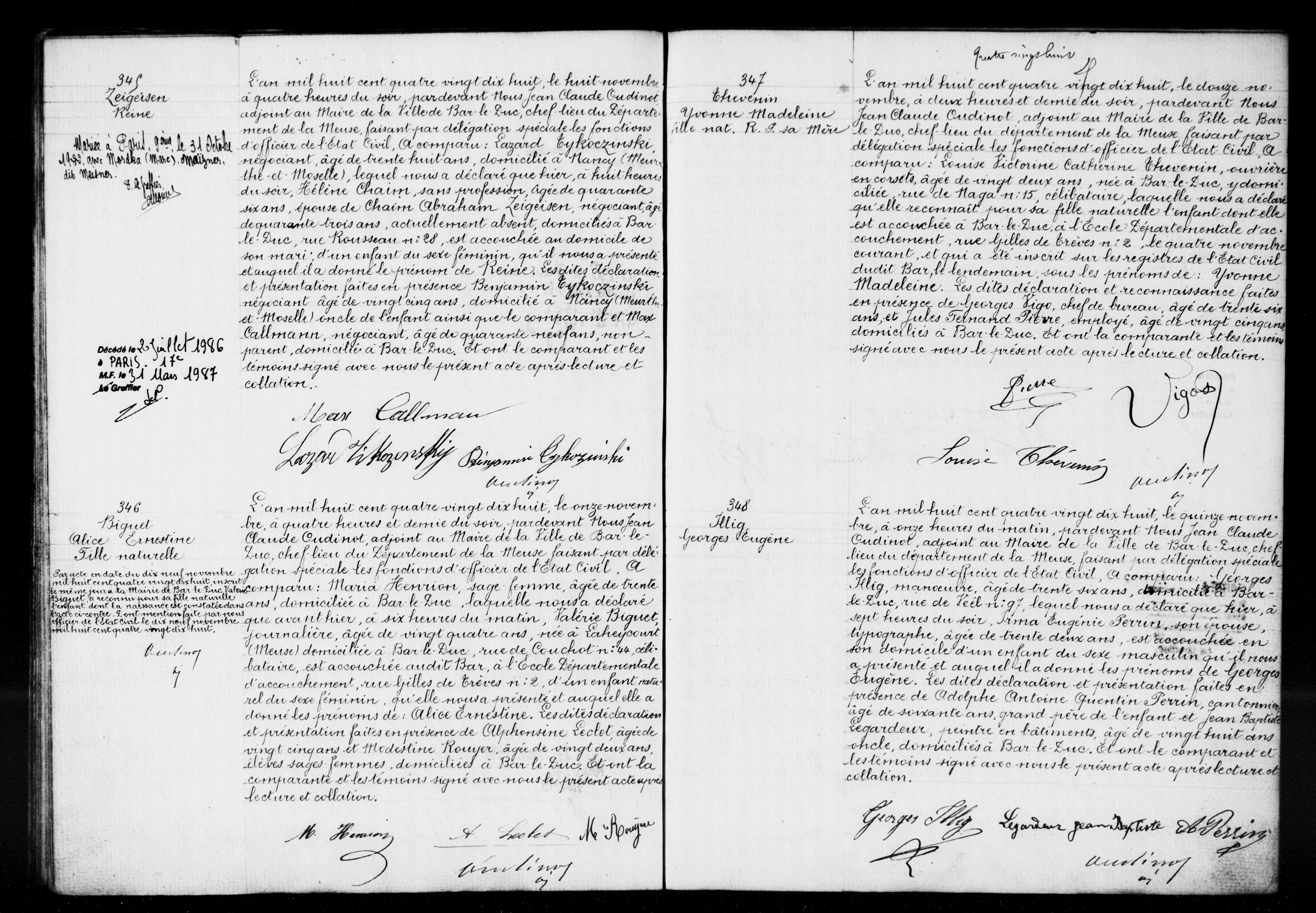 Actes de naissance et de mariage de Reine ZEIGEISEN [Archives Départementales de la Meuse et Archives de la Ville de Paris, en ligne]