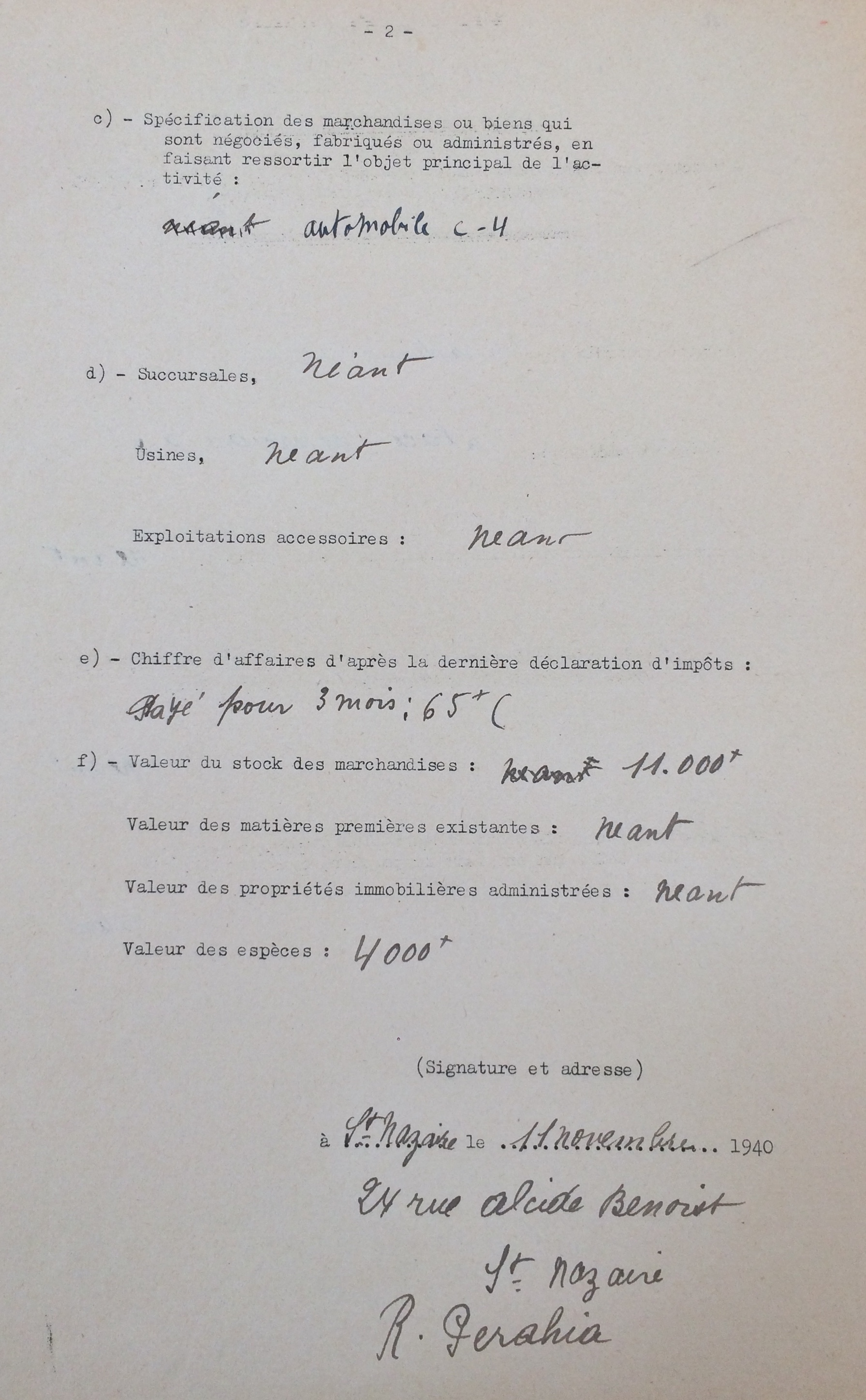 L’ordonnance du 31 octobre 1940 obligeait à ce que les Juifs déclarent leur commerce ce que fait Robert le 11 novembre 1940.