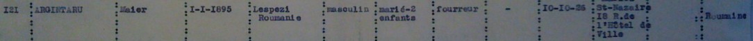 Mayer ARGINTARU est né le 01 janvier 1895 à Lespesi (Roumanie). Marié avec deux enfants, son épouse Etla née RAPAPORT est née le 25 juin 1896 à Roman en Moldavie, Roumanie. Il est arrivé en France le 10 octobre 1926 et il exerce la profession de fourreur. En 1936, il exerce celle de marchand forain. Un de leurs deux enfants prénommé Lazare est né à Paris le 10 juillet 1930 (12ème arrondissement) au 19 bis, rue Chaligny alors que le couple réside à Bagnolet au 43 bis, rue des Malassis. Le 6 mars 1937, un deuxième enfant naît au 4 rue Saint-Laurent dans le 10ème arrondissement prénommé Gaston. Nous ne connaissons pas sa date d’arrivée de la famille sur Saint-Nazaire.