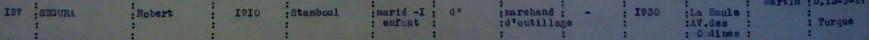 Robert SEGURA est né en 1910 à Istamboul, marié et père d’un enfant. Il exerce la profession de marchand d’outillage. Entre le 27 septembre et le 20 octobre 1940, il se fait recenser en tant que Juif auprès de la sous-préfecture de Saint-Nazaire sous le numéro 127. Sa date d’arrivée n’est pas connue à La Baule où il réside avenue des Ondines.