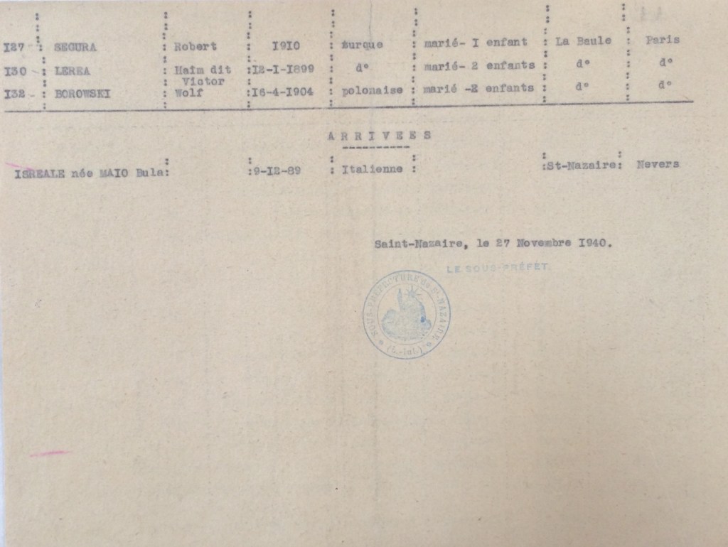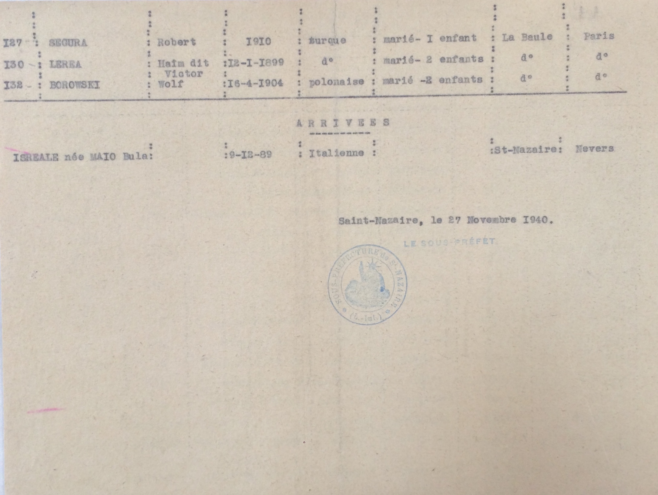 Entre le 27 septembre et le 20 octobre 1940, Wolf BOROWSKI se déclare en tant que Juif auprès de la sous-préfecture de Saint-Nazaire (ou commissariat de la Baule) sous le numéro 132.