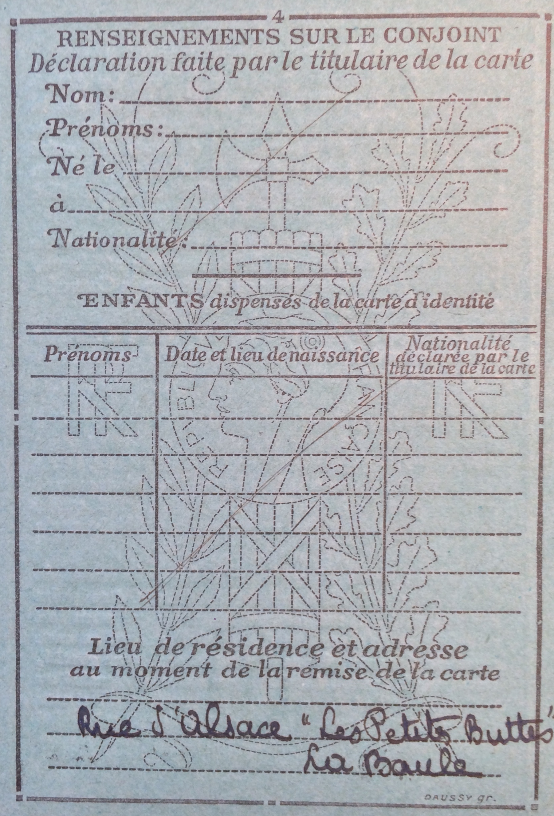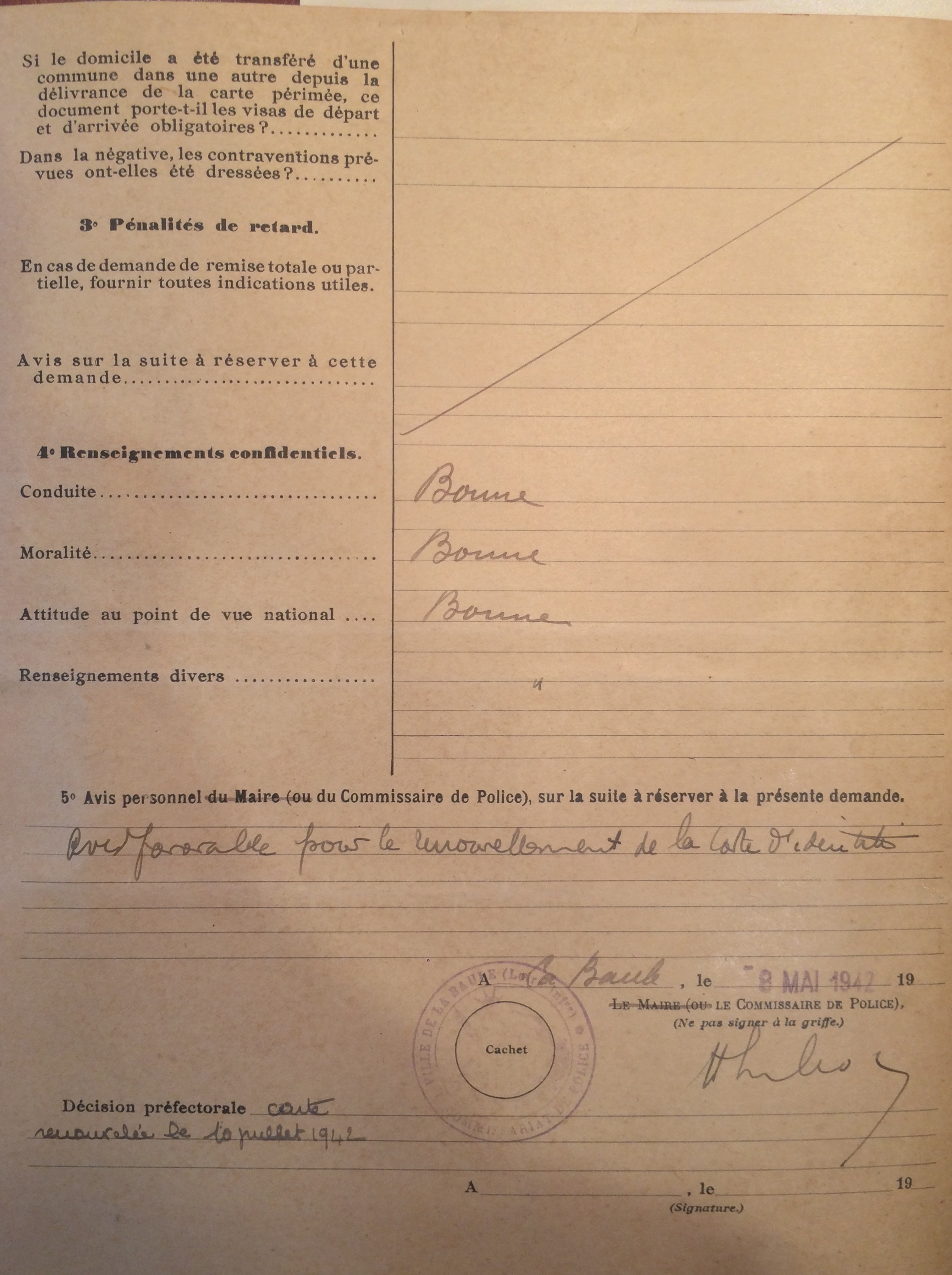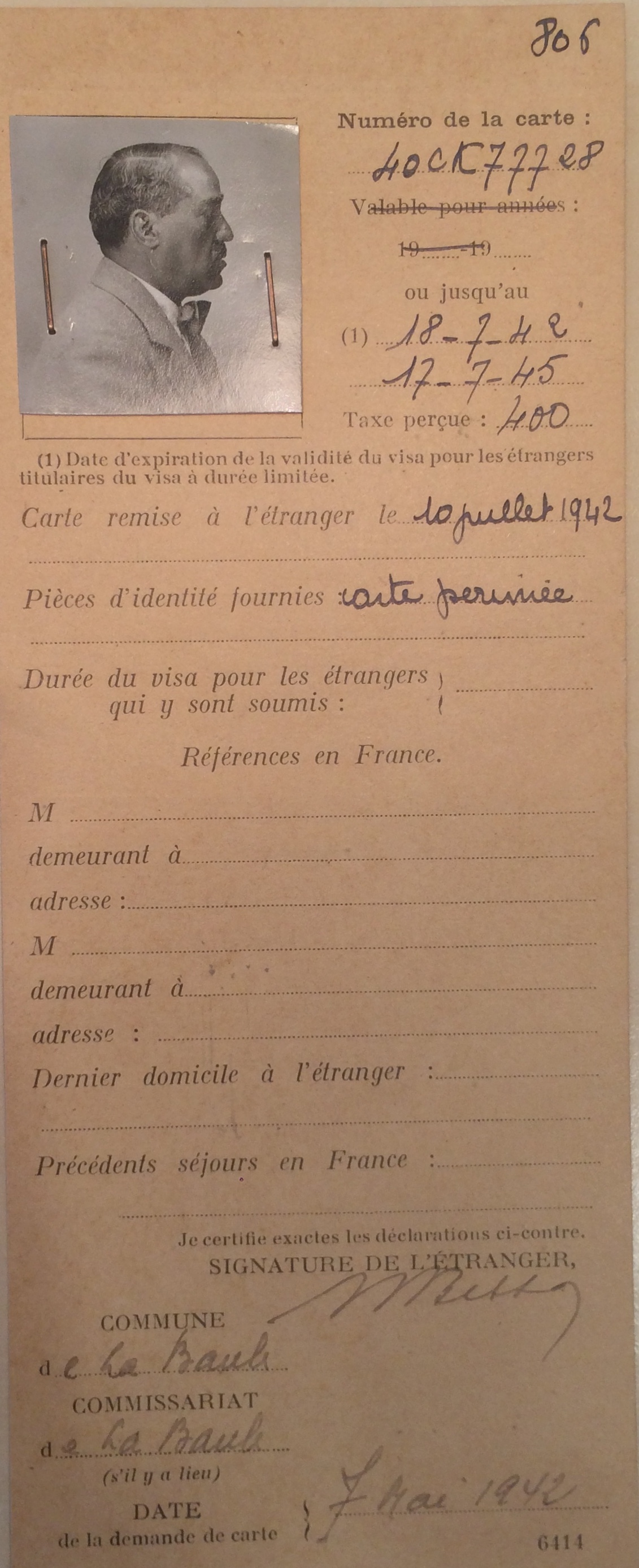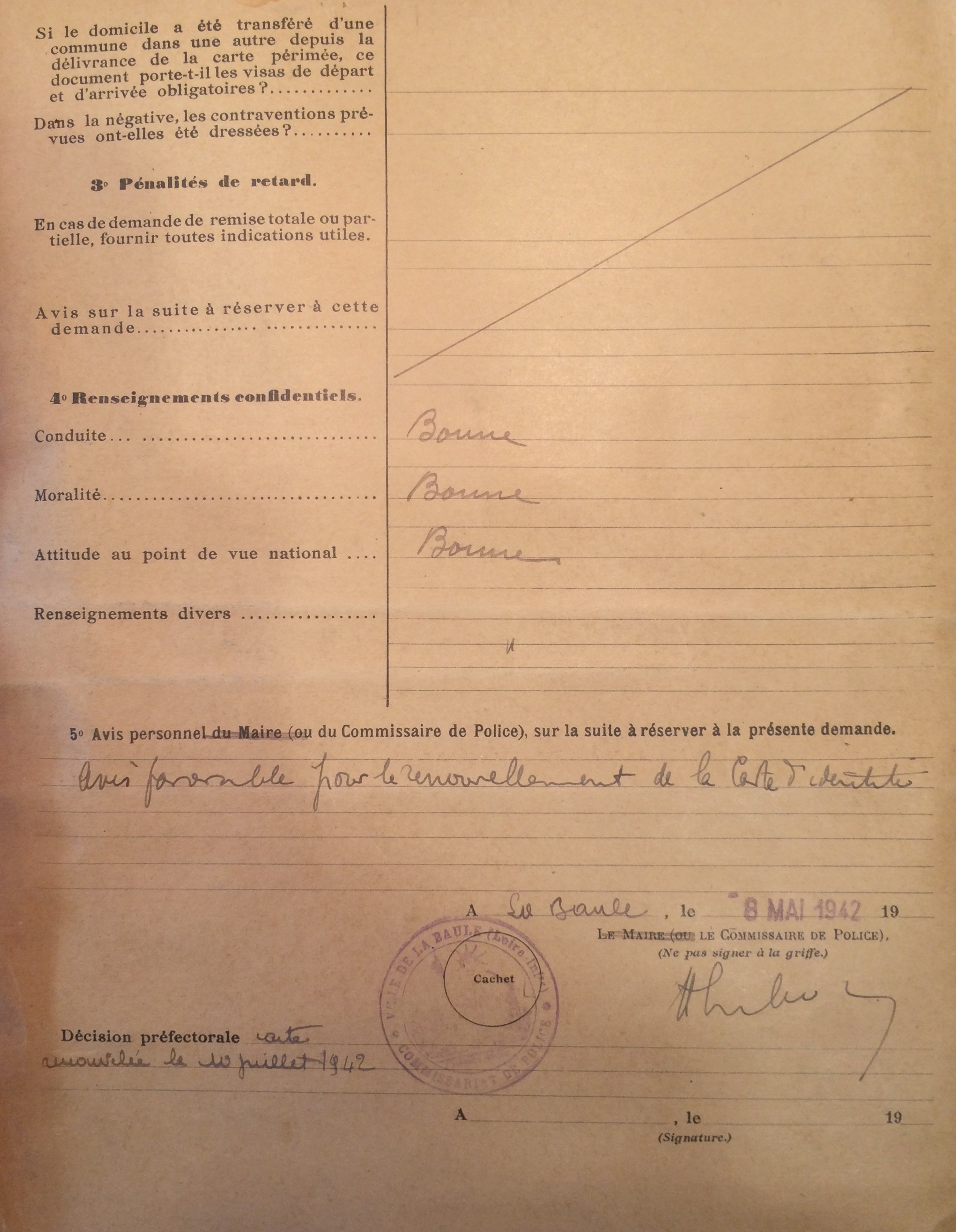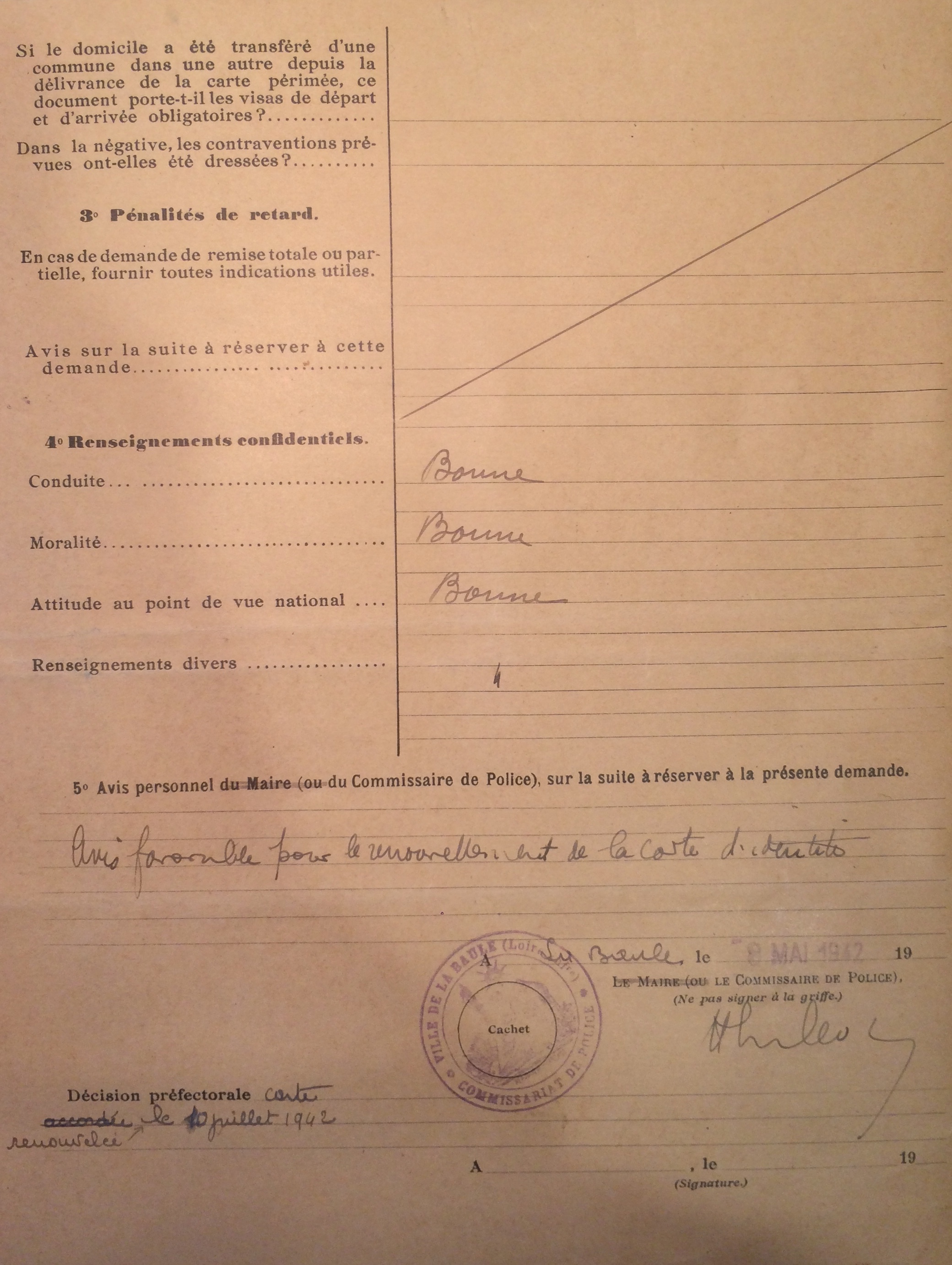 En février 1942, il effectue une déclaration auprès des Autorités Françaises.