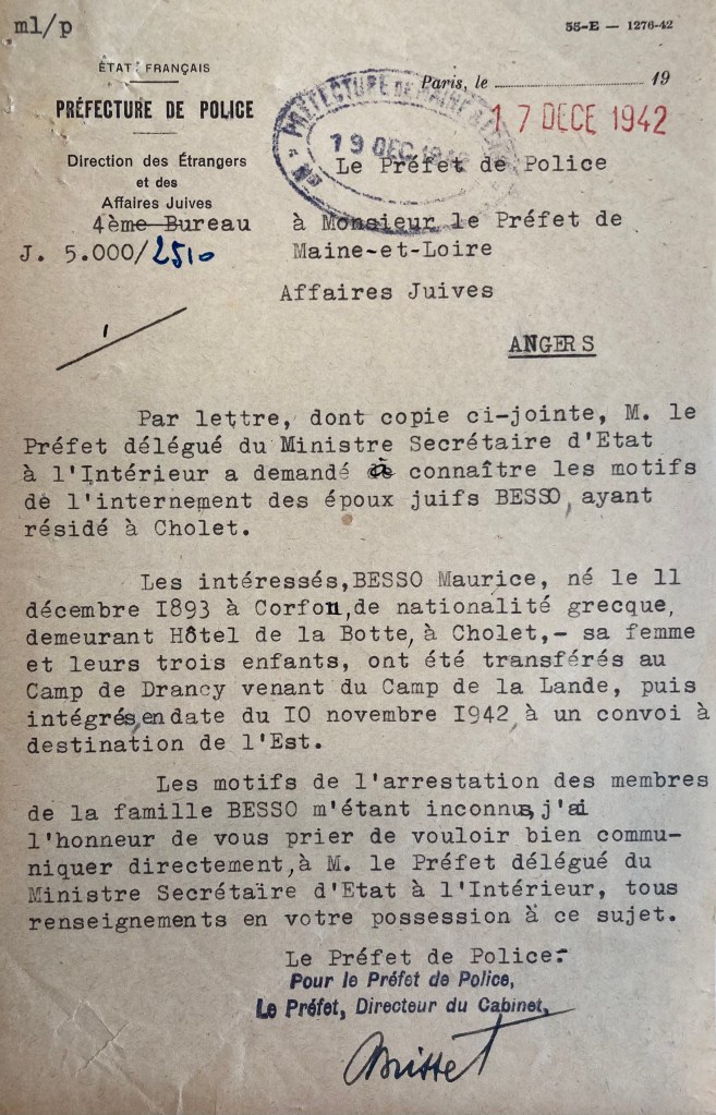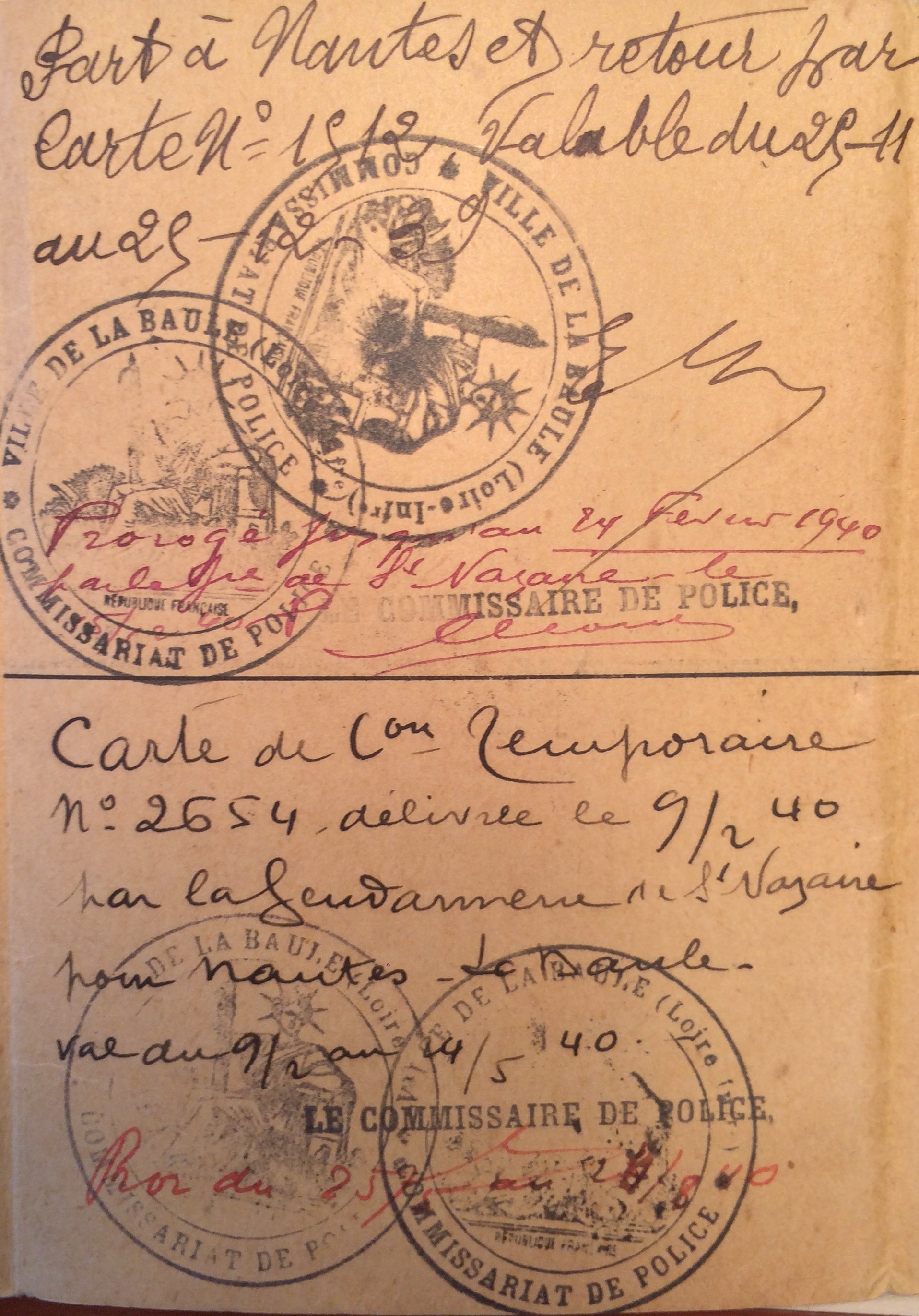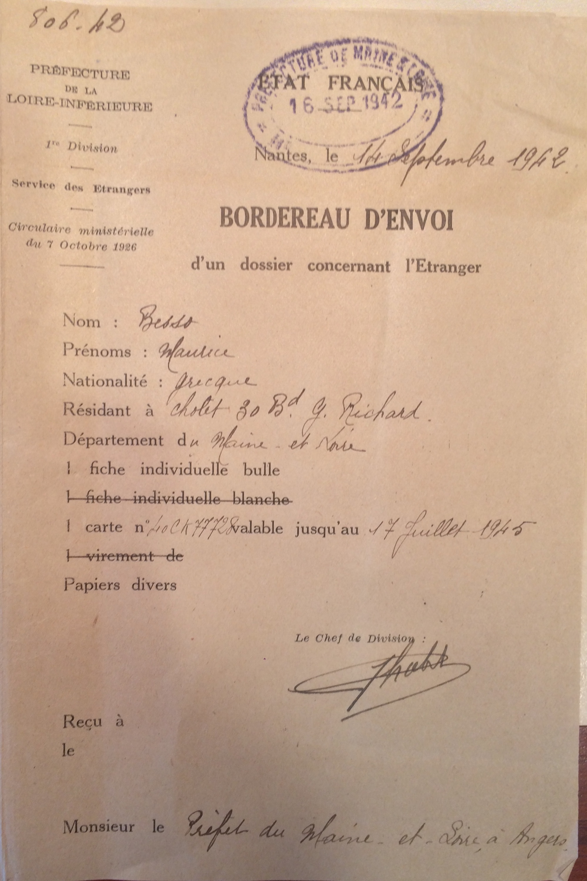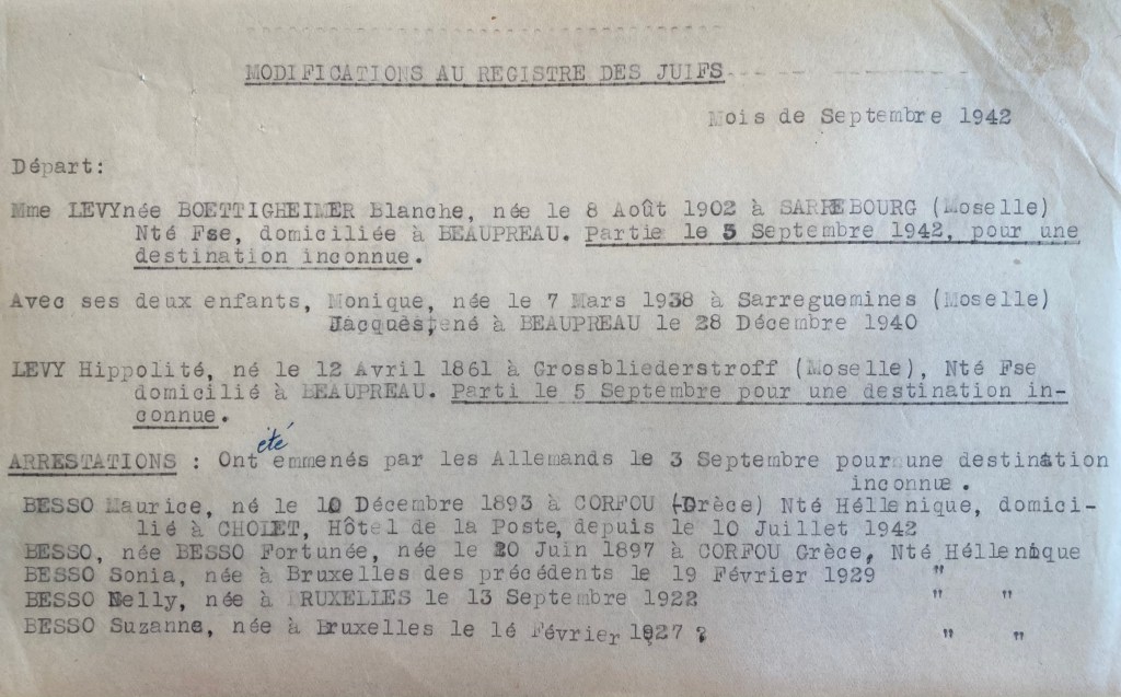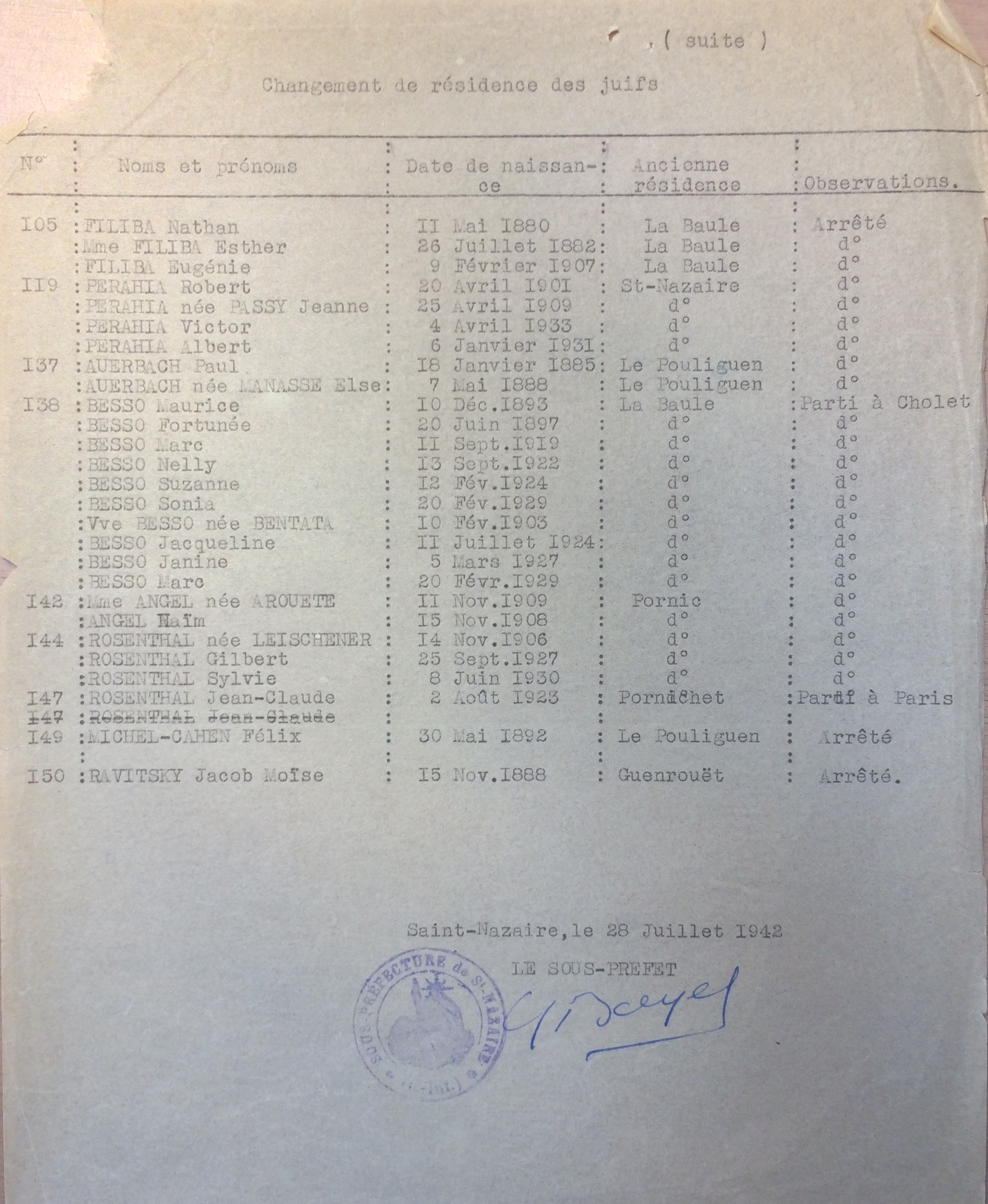 La famille BESSO Maurice quitte La Baule le 07 juillet [ADML 303W290] pour arriver au plus tard le 10 juillet 1942 à Cholet [ADML 7W1].