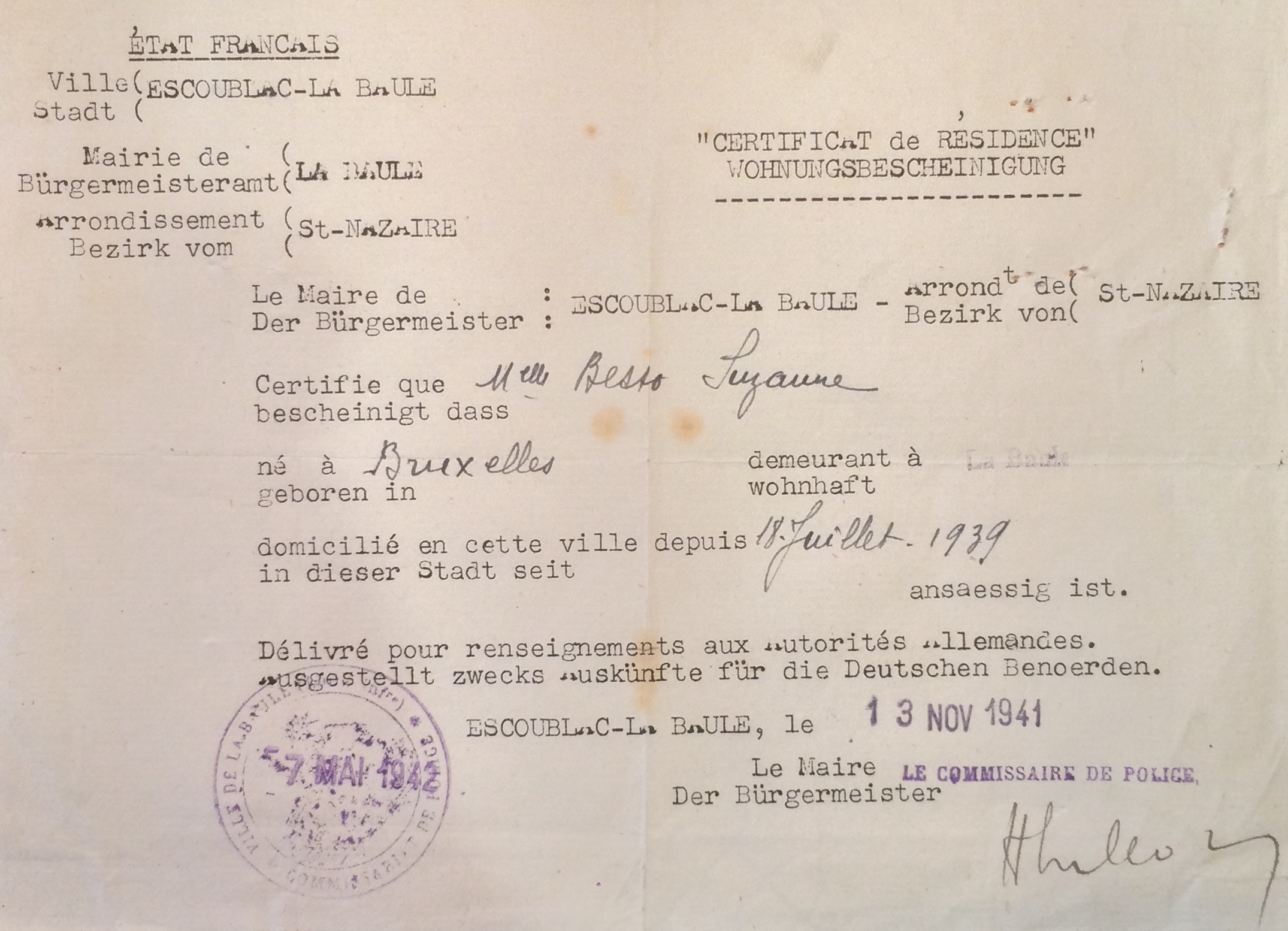 Entre le 27 septembre et le 20 octobre 1940, Maurice BESSO se fait recenser auprès de la sous-préfecture de Saint-Nazaire sous le numéro 138. Juste après, sa belle-soeur Linda et ses trois enfants se font recenser et habitent tout près Villa Martine, Avenue d’Alsace/Avenue de Lorraine à La Baule.