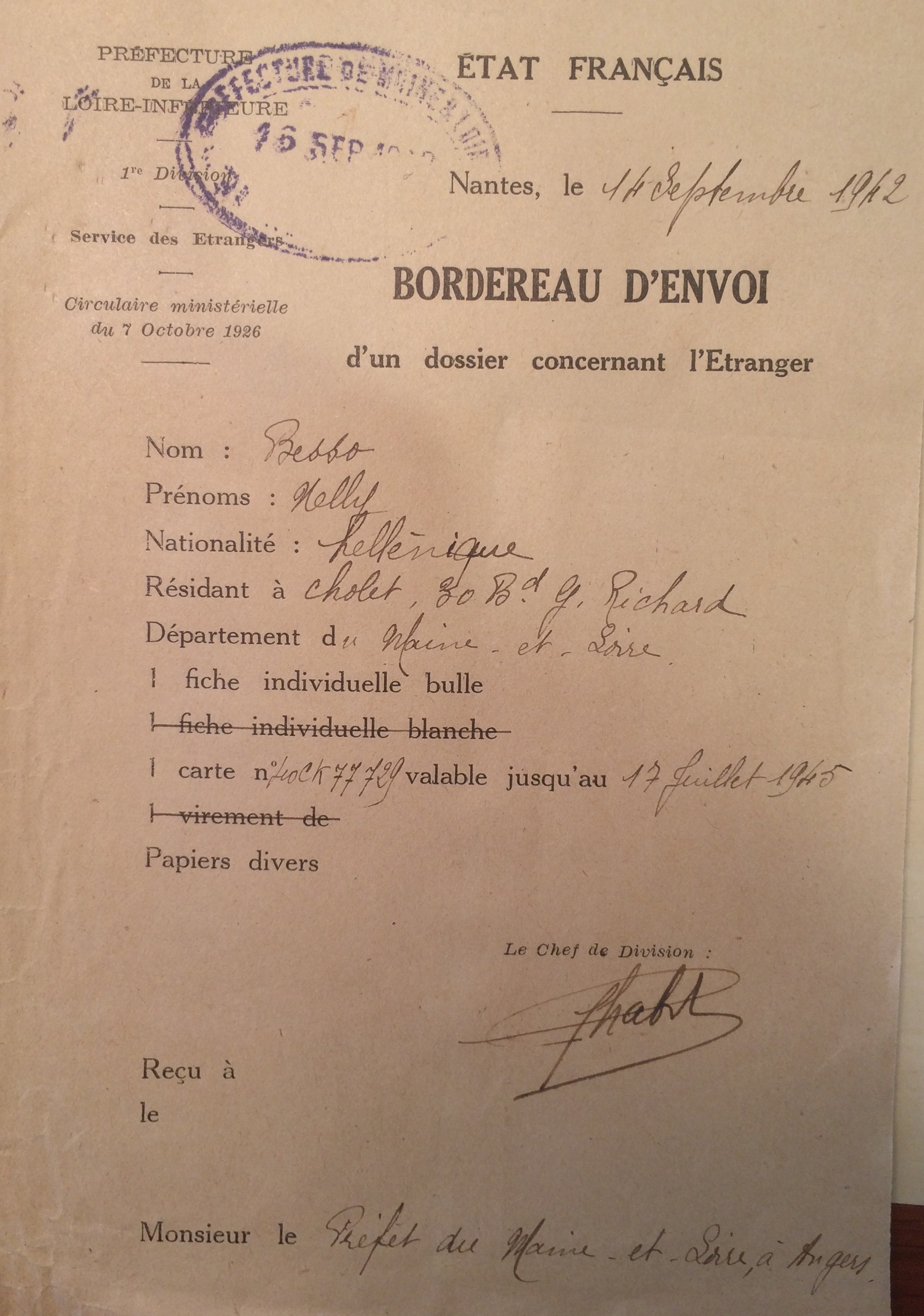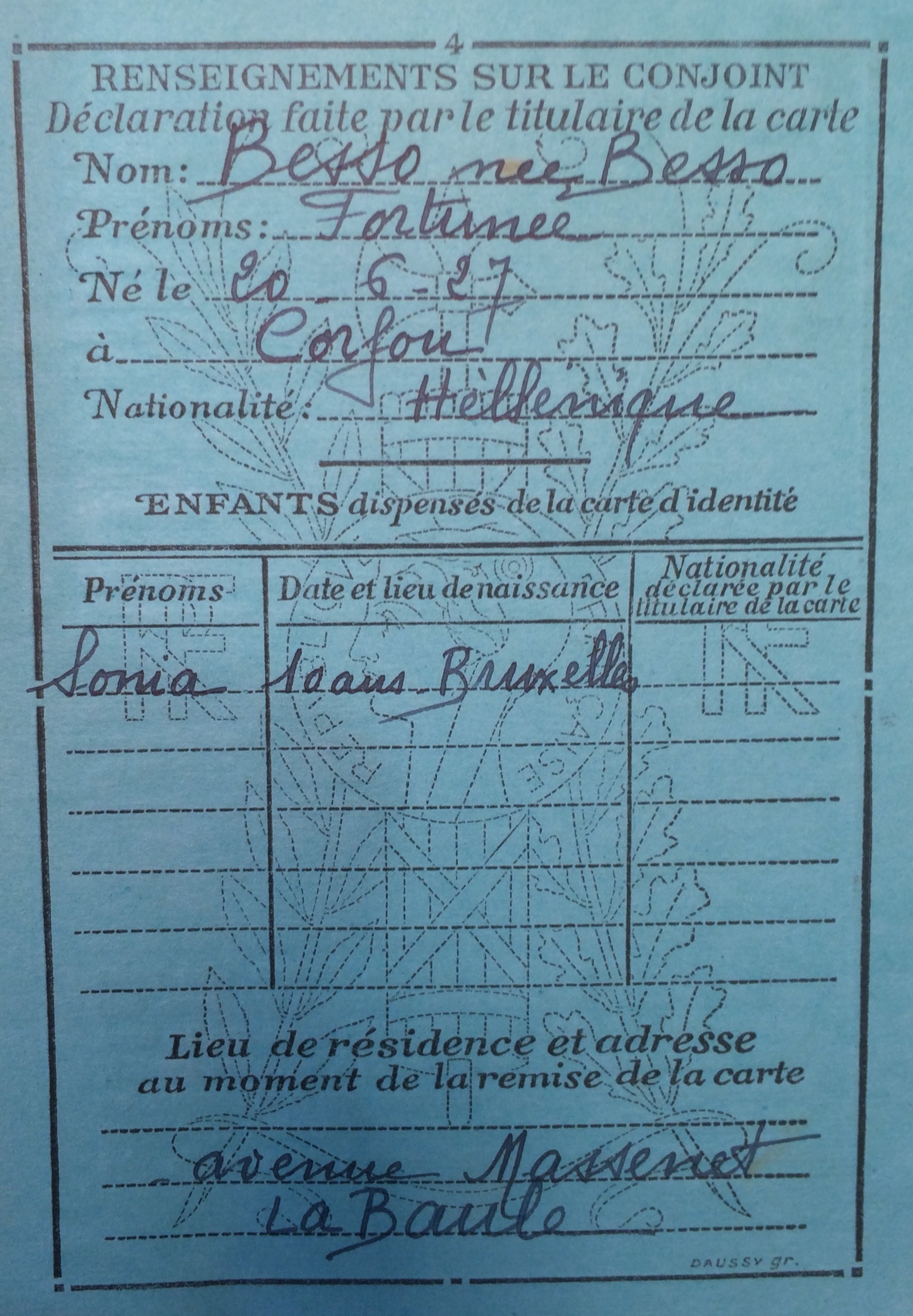 La famille est arrivée en France de Belgique le 18 juillet 1939 par le poste frontière de Quiévrechain (France) avec un visa valable jusqu’au 4 avril 1940 délivré sur leur passeport hellenique par le Consulat de France à Bruxelles. Leur lieu de résidence à Bruxelles est le 132 avenue Franklin Roosevelt.