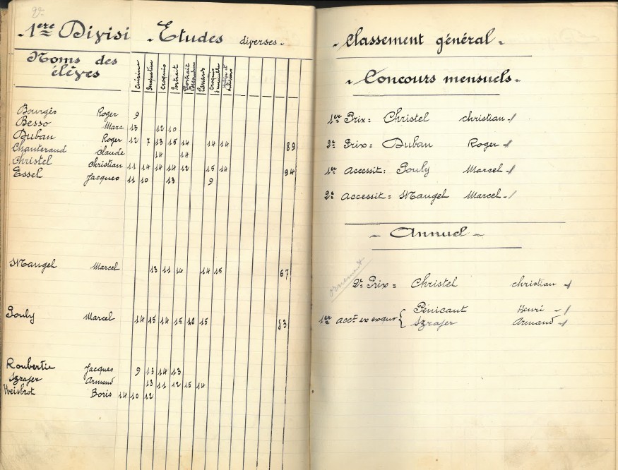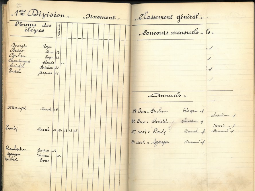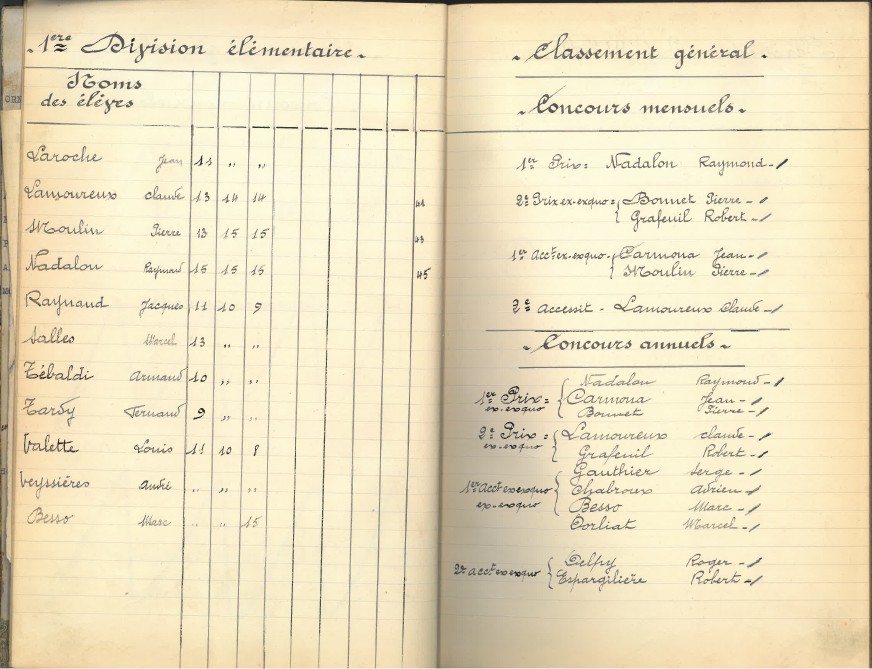 Ecole nationale des Arts décoratifs (E.N.A.D.) de Limoges : concours mensuels et annuels, prix et notes des jeunes gens et jeunes filles (1941-1947) [Archives Départementales de la Vienne 44J28]