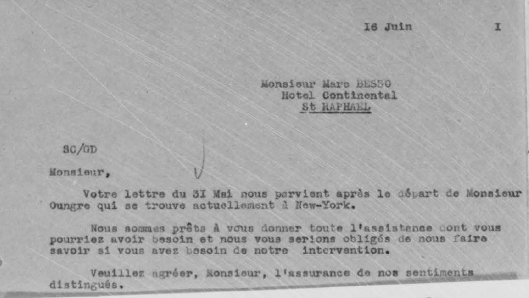 1. Venant de mettre de l’ordre dans les archives familiales, j’ai retrouvé une lettre du 17 janvier 1940 adressée au grand père paternel de mon épouse, de Docteur Marcel Meunier (pédiatre des enfants Besso lors de leur séjour à Bruxelles). J’ai été très ému de lire ce qu’il était advenu de la famille Besso.