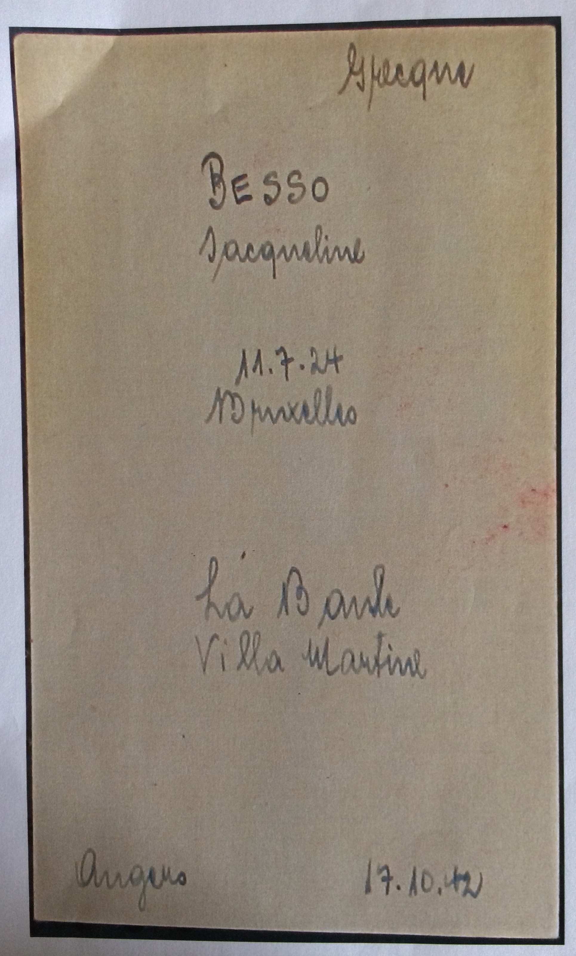A l’Hôtel des Pléïades, Linda BESSO se lie d’amitié avec la famille DESPRETZ, Gérard DESPRETZ l’un des enfants, ayant le même âge que Jacqueline BESSO.