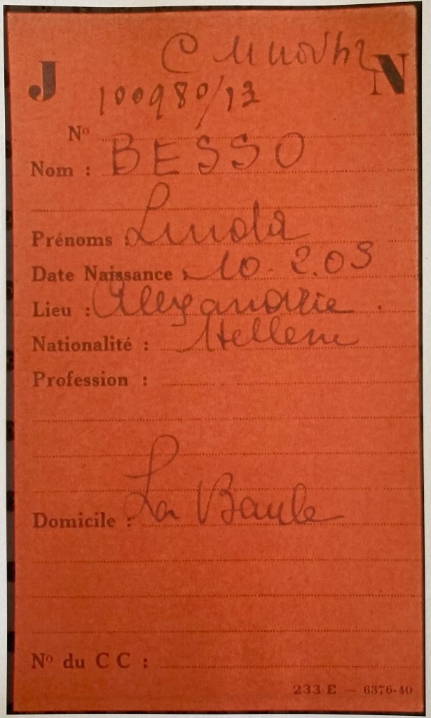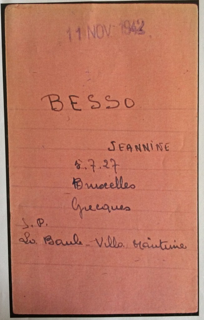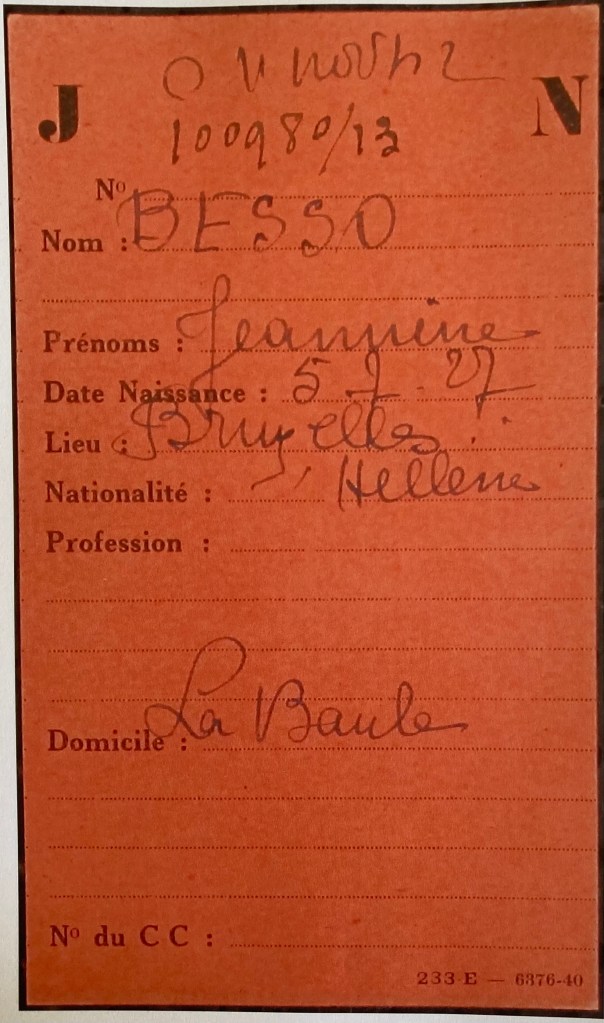 Linda BESSO et ses trois enfants sont arrivés en France le 19 août 1939 par le poste-frontière de Quévy (Belgique) avec un passeport grec avec visa pour trois mois valable jusqu’au 27 octobre 1939 délivré par le Consulat de France à Bruxelles. Linda avait été prévenue par son beau-frère Maurice, alors en villégiature à La Baule, de l’imminence de l’entrée en guerre de l’Allemagne avec la France et d’une possible invasion de la Belgique. Le troisième frère de Maurice et Albert, Joseph Michel, son épouse Victoria et leurs deux enfants sont également prévenus par Maurice et rejoignent également La Baule en provenance d’Egypte par Marseille.