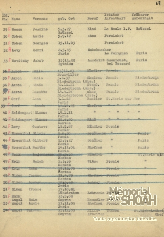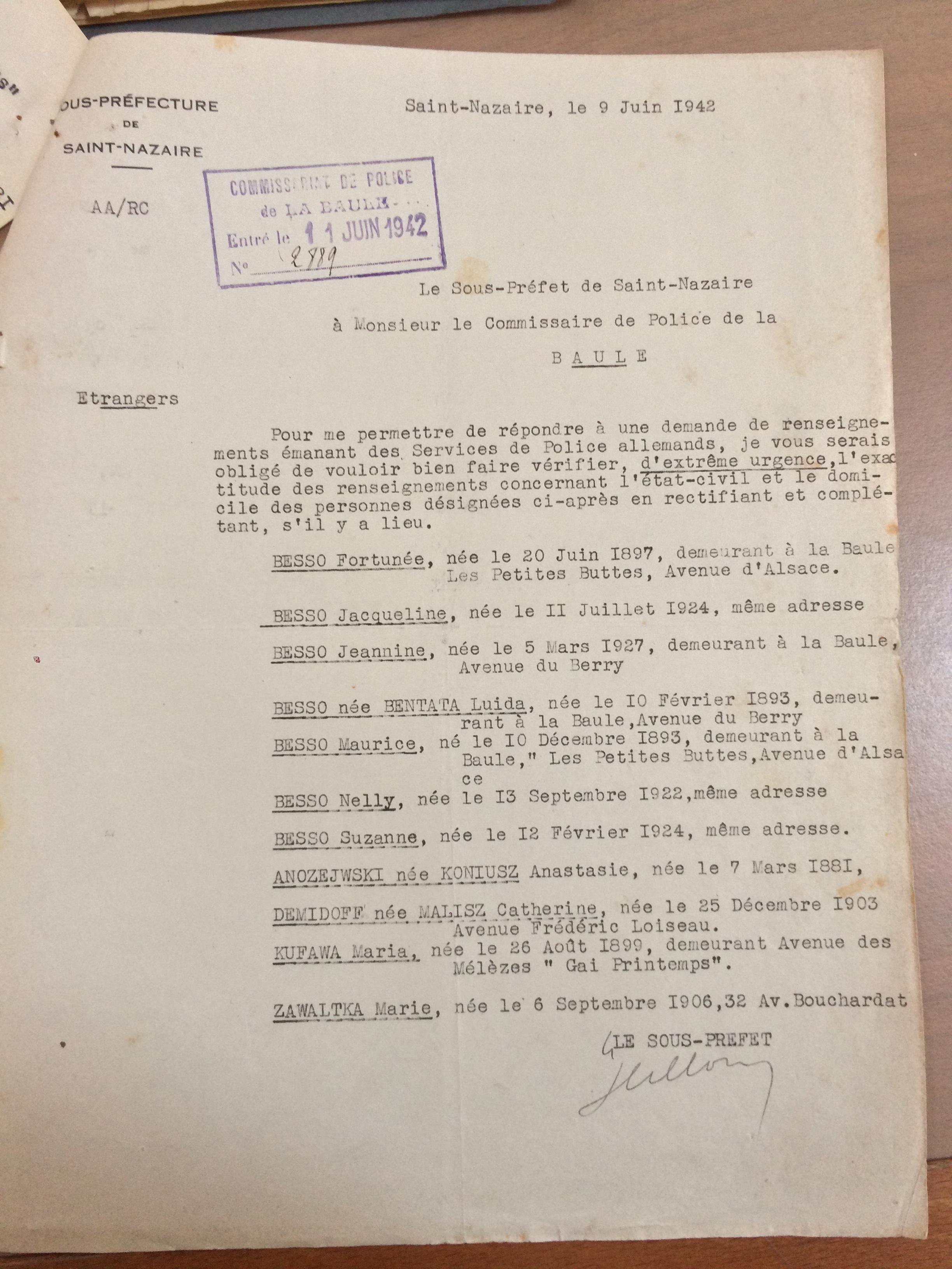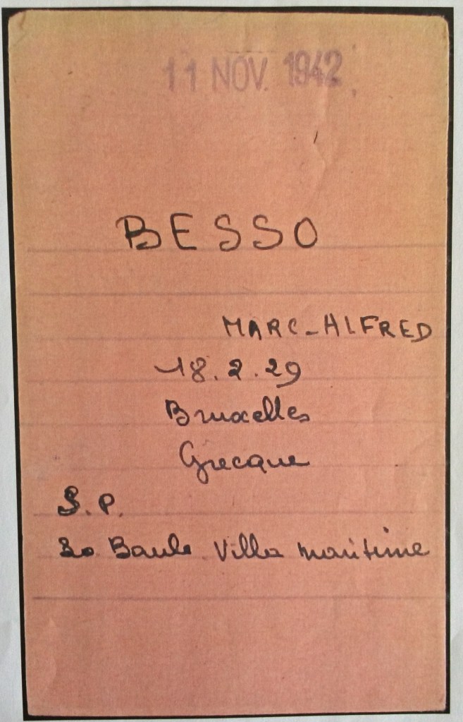 En juin 1942, les Autorités allemandes (SD) demande des renseignements auprès des autorités françaises au sujet entre autres des familles BESSO.
