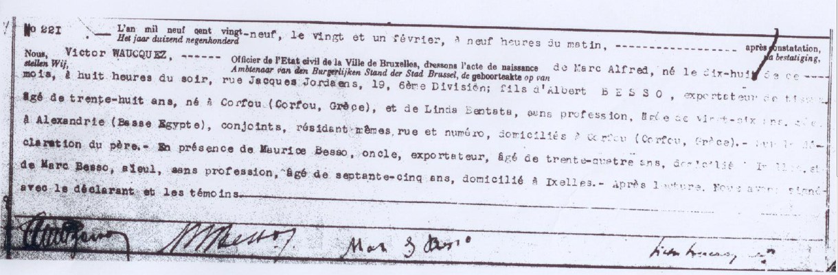 Acte de naissance de Marc BESSO [Etat Civil, Bruxelles]