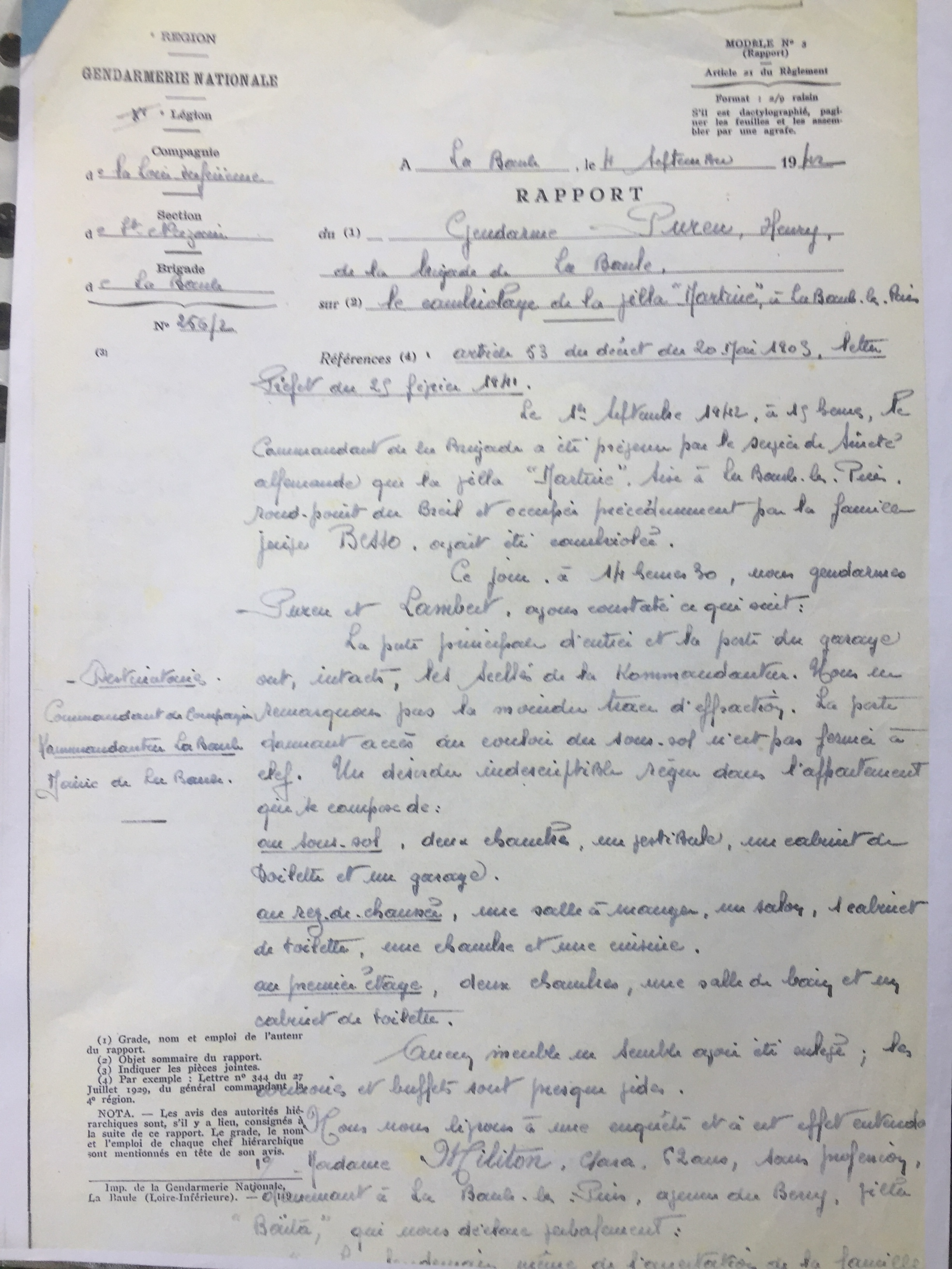 Rapport de Gendarmerie 04 septembre 1942 [Archives Municipales de La Baule, 4H3/82]