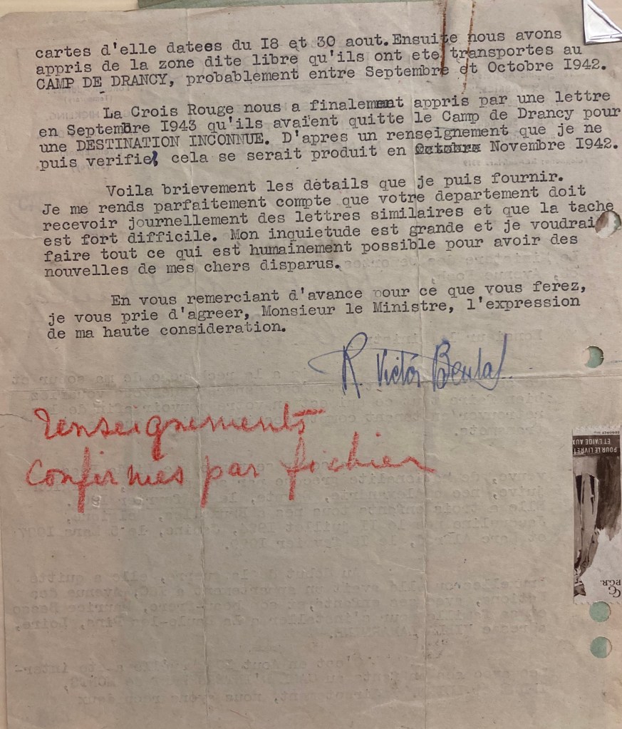 La famille quitte le Camp de La Lande le 13 octobre 1942 pour être enregistrée à Drancy le 17 octobre 1942.