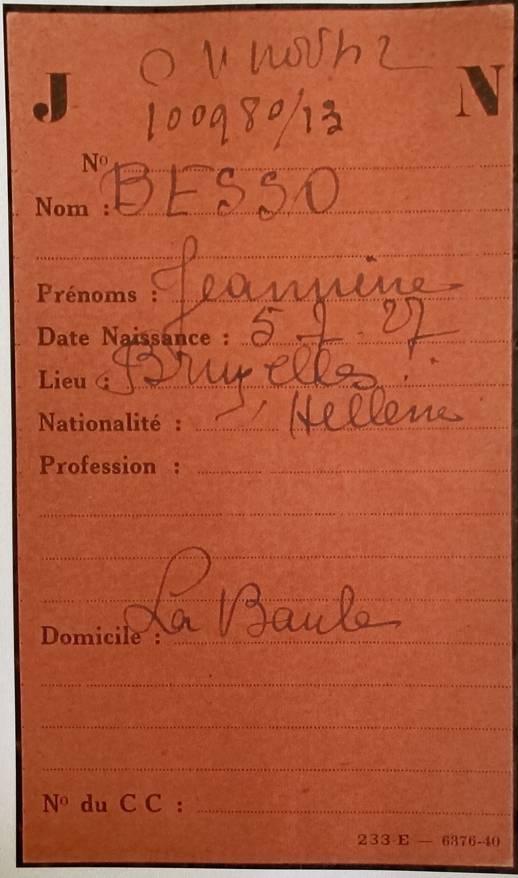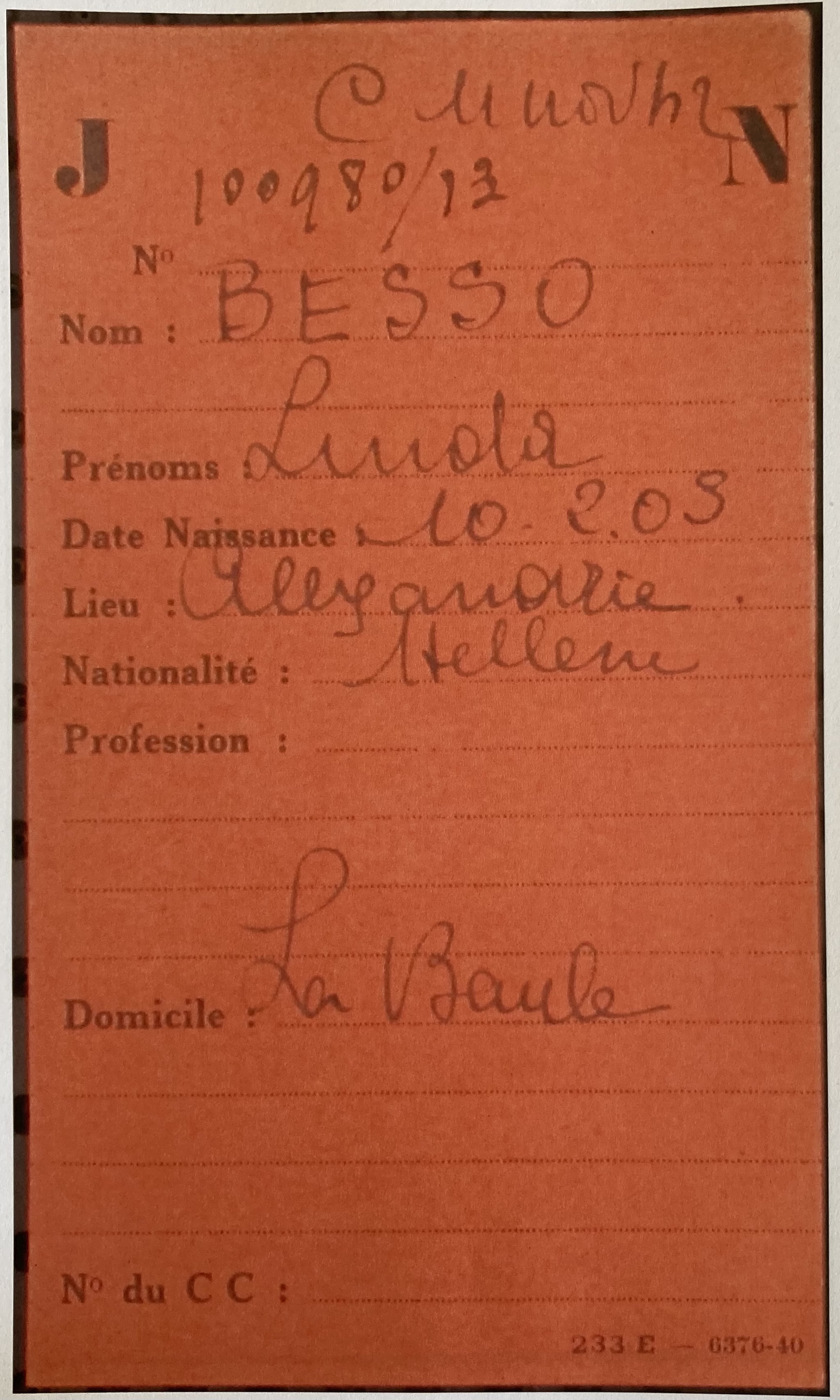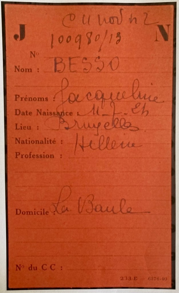 Entre le 27 septembre et le 20 octobre 1940, Linda BESSO s’enregistre en tant que Juif auprès de la sous-préfecture de Saint-Nazaire (ou mairie de La Baule) sous le numéro 139.