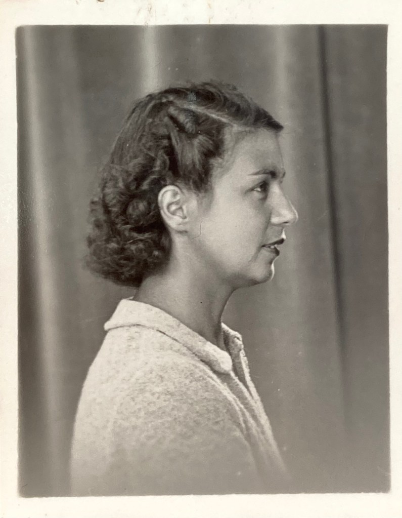 C’est à Saint-Nazaire que je t’écris cette fois en car : figure toi que j’ai abandonné [illisible] pour le collège de jeunes filles d’ici afin d’avoir un certificat de fin d’études secondaires si par hasard j’étais recalée au bac.
