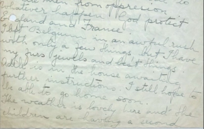 J’ai quitté la Belgique dans une affreuse cohue avec seulement quelques affaires mais j’ai mes [illisible] bijoux et mes meilleures affaires.