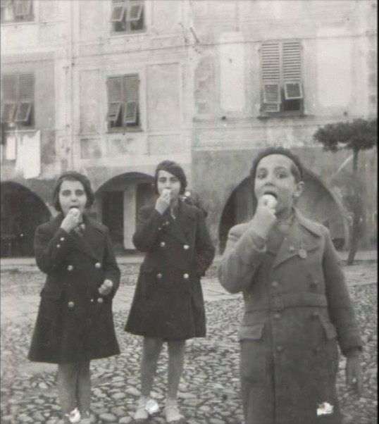 Janine, Jacqueline et Freddy BESSO (lieu et date inconnus) [@ collection particulière famille BENTATA] [Les volets des immeubles laissent penser à un pays méditerranéen]