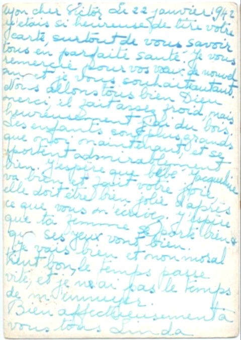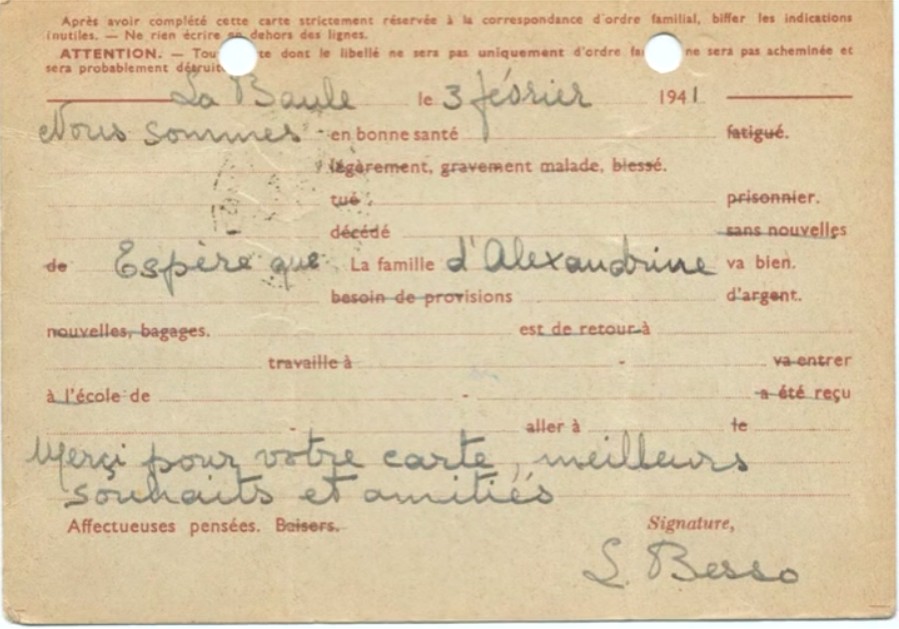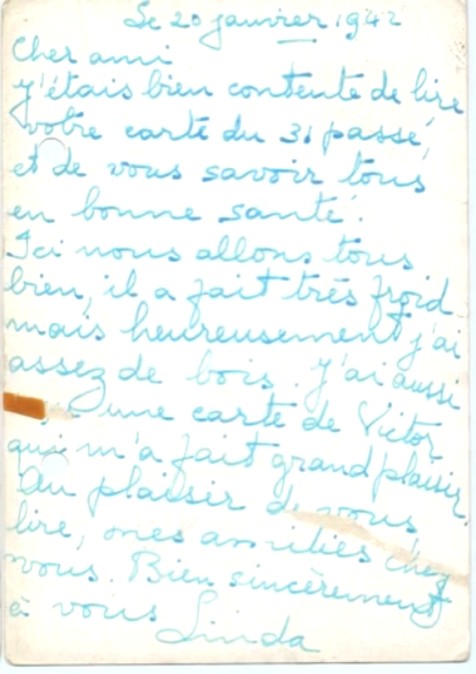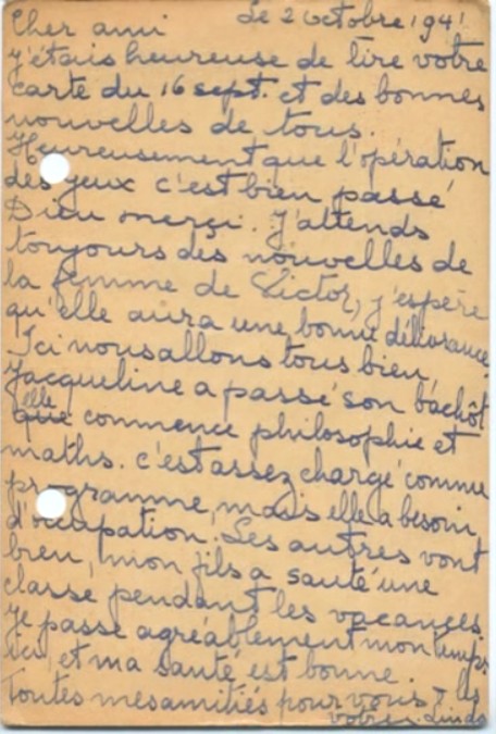 Lettre-carte de Linda BESSO à ?, 3 février 1941 [@ collection particulière famille BENTATA]
