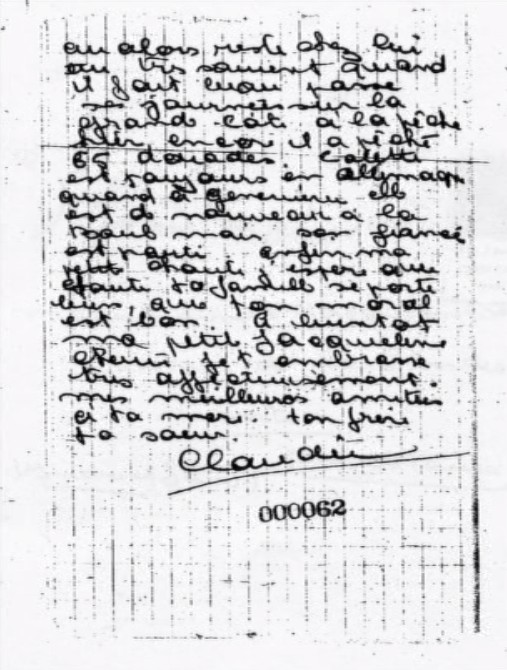 Lettre du ? de Claudie à Jacqueline BESS0 au camp de la Lande