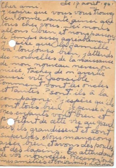 Lettre du 17 août 1941