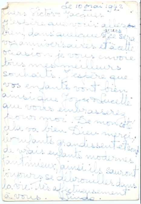 Je n’ai plus de vos nouvelles depuis janvier, c’est bien long, cependant je prie pour vous et vous serez protégés car nous devons nous revoir un beau jour.